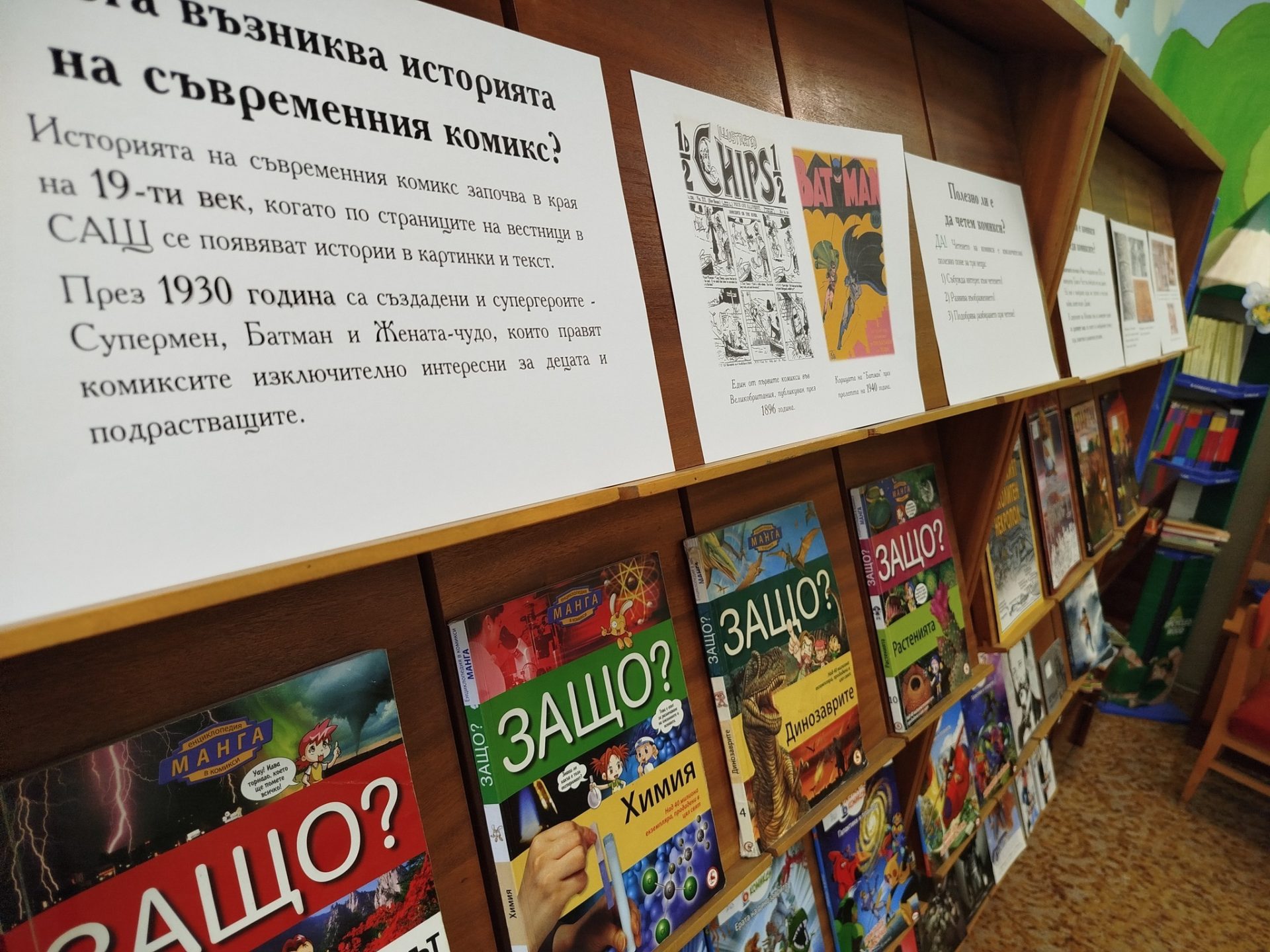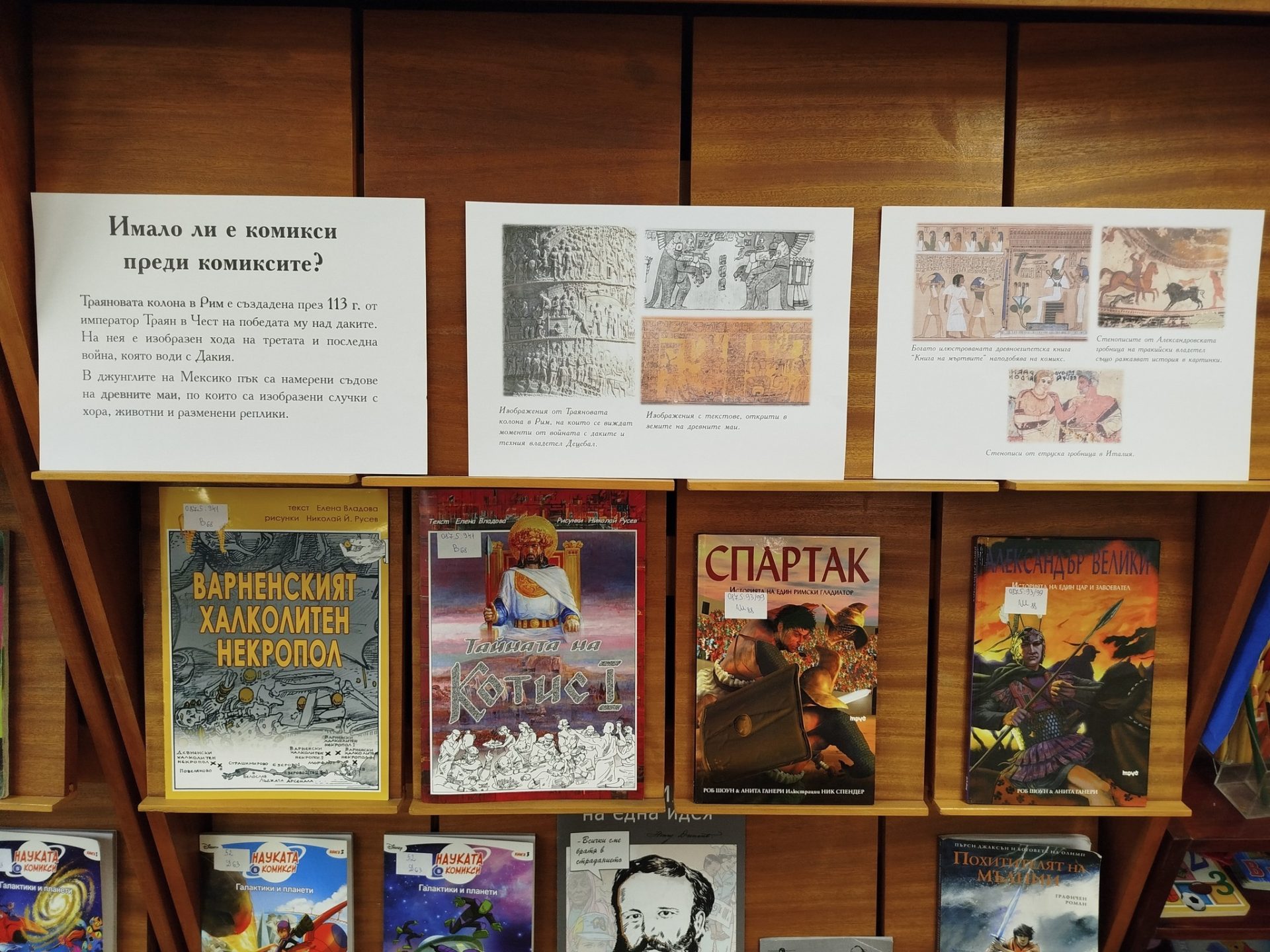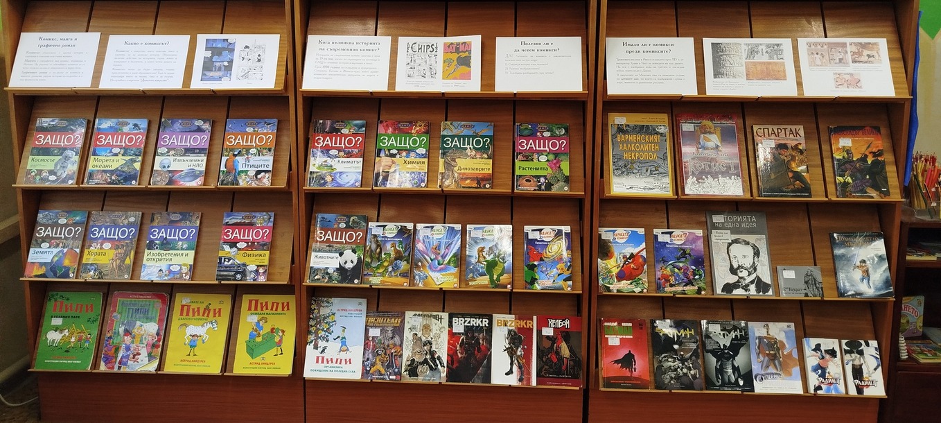 „Много деца търсят комикси и в последно време заредихме доста нови заглавия. Моя лична кауза е да имаме повече книги за историята на българските земи и поради тази причина съм осигурил и такива комикси. Нека децата да виждат с какво разполагаме, за да бъдат по-любопитни и да видят, че в литературата наистина има по нещичко за всеки. Искам следващия месец да направя подобно изложение с книги само от съвременни български автори, а такива има много“, обобщи за интереса към изданията библиотекарят в Детския отдел на читалищната библиотека Андрей Андреев.