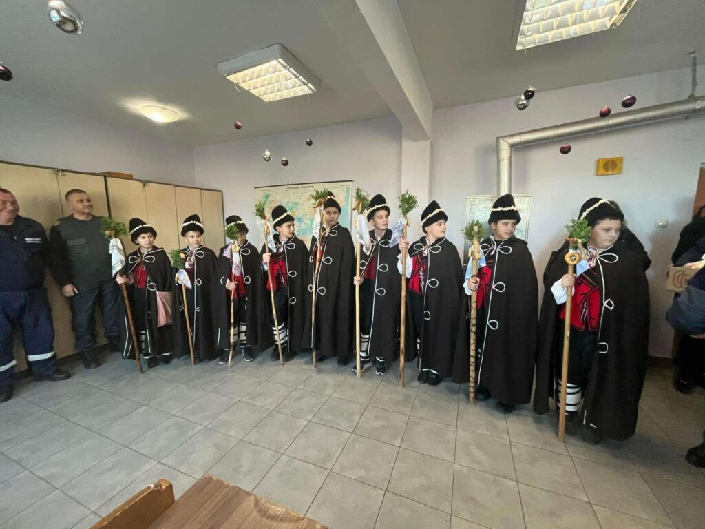 Облечени в традиционни носии, с автентични геги и богато украсени калпаци, момчетата внесоха духа на българската традиция. Те изпълниха традиционни коледарски песни и наричания за здраве, берекет и сполука.