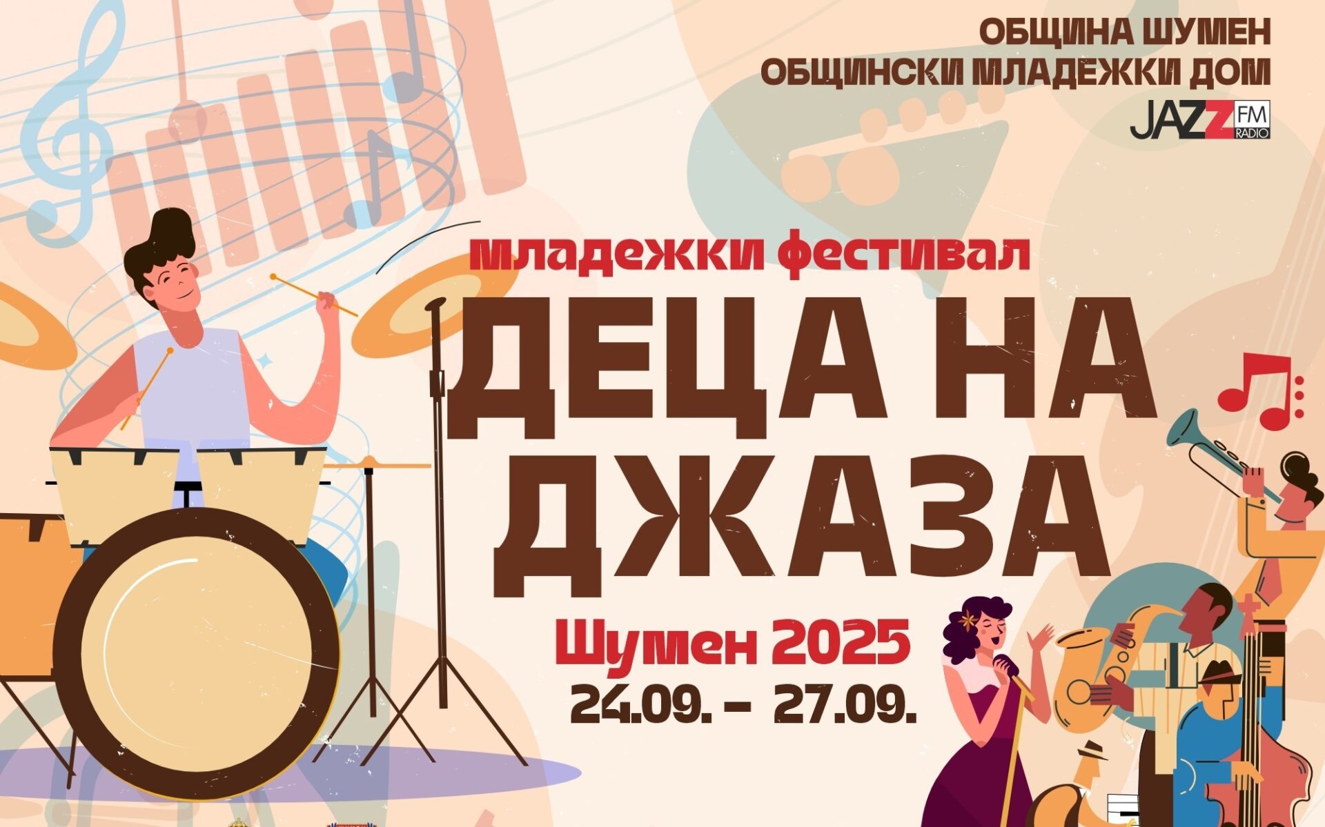 Третото издание на Младежкия фестивал „Деца на джаза“ ще се проведе в Шумен от 24 до 27 септември, съобщиха организаторите от Общински младежки дом. С фокус върху ударните инструменти музикалният форум поставя в центъра личността на основоположника на съвременната българска перкусионна школа проф. д-р Добри Палиев. Наследник на шуменски род, по време на Втората световна война той идва в града на своите корени и с приятели създава триото Джазът на амбициозните. Тогава открива таланта си да свири на барабани. Виден композитор и преподавател, дълбоко уважавана фигура в българския музикален живот, проф. д-р Палиев оставя богато наследство, до което ще се докоснат младите музикални таланти и широката публика.
