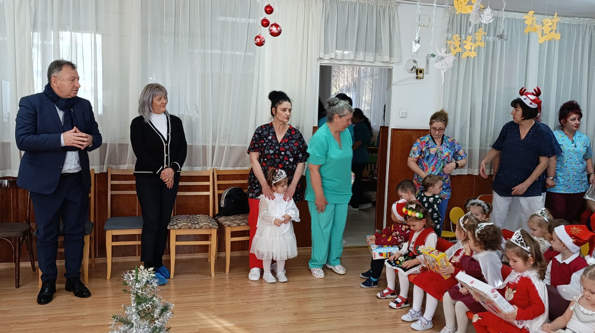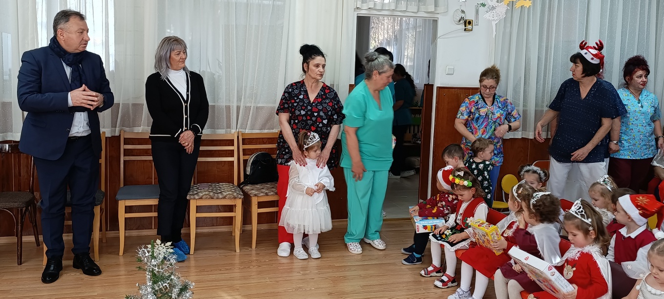 Директорът на Детска ясла „Щастие“ Ваня Димитрова благодари за предоставените игри и подаръци и пожела светли празници на всички.