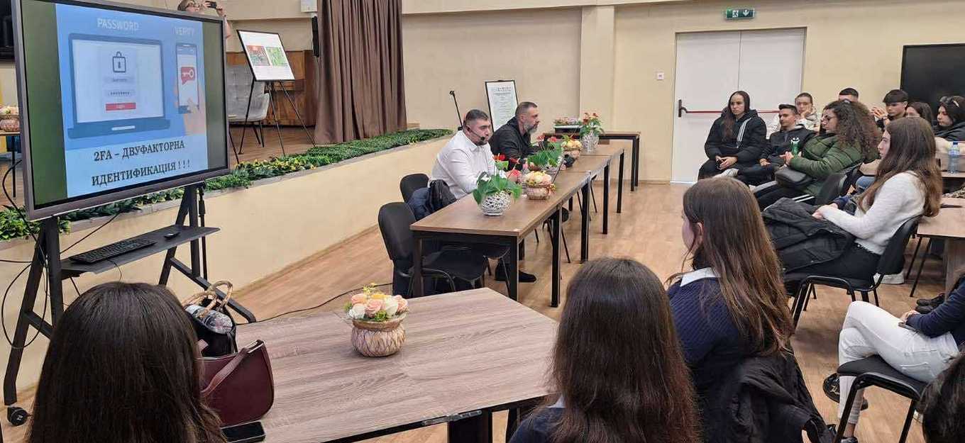Обучения на тема „Превенция на престъпления и виктимизация с използване на информационни и комуникационни технологии“ проведоха служители на дирекция „Киберпрестъпност“ при ГДБОП-МВР пред зрелостници в две шуменски училища – Средно училище „Трайко Симеонов“ и ПЕГ „Никола Й. Вапцаров“. В рамките на Националната превантивна програма „Предпазване на младите хора от престъпление“, която се реализира за трета поредна година на територията на ОДМВР- Шумен, полицейските служители изнесоха важна информация – как младите могат да попаднат в различни измамни схеми, как могат да злоупотребят с личните им данни, какви са опасностите, които крият социалните мрежи, както и какви са най-честите измами при онлайн пазаруването.