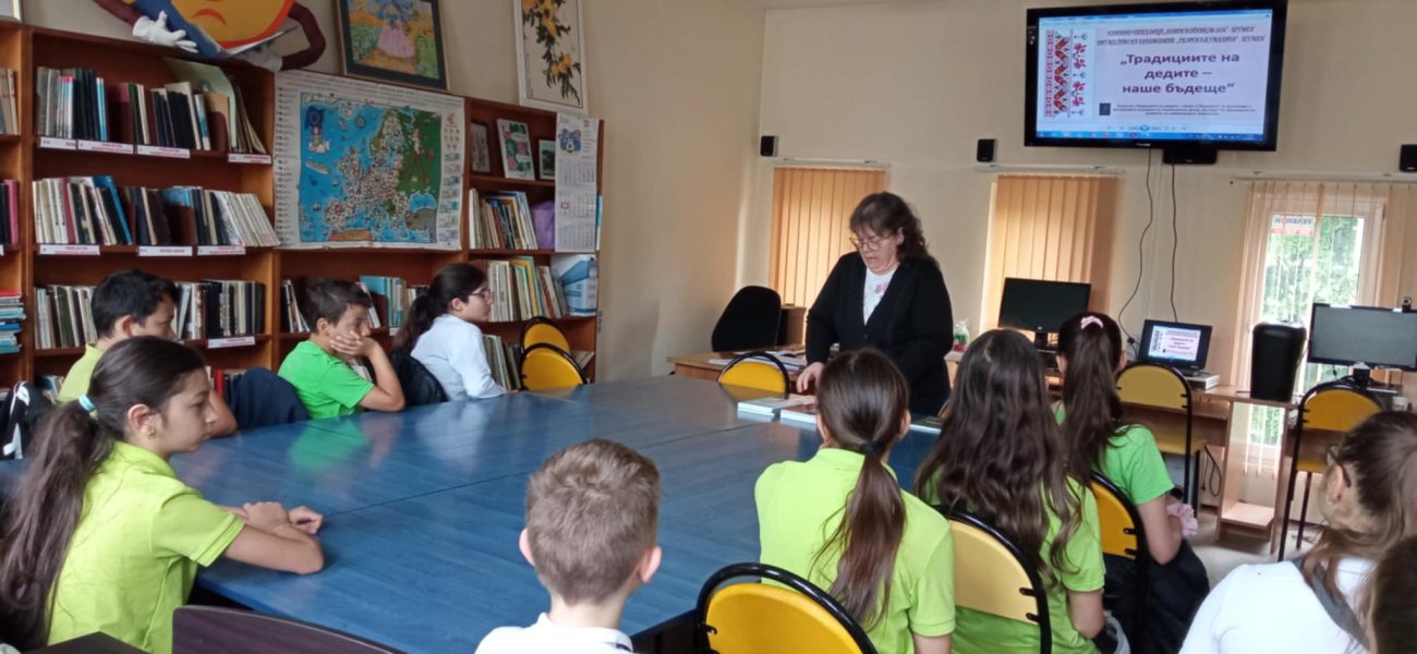 15 ученици от Трето основно училище „Димитър Благоев“ с ръководител Николинка Станчева, учител по история в училището, проведоха първото си занятие в детския отдел на библиотеката към читалището. Лектор беше председателят на Дружеството на краеведите Марияна Филипова, която увлекателно разказа пред тях какво представляват традициите, представи някои от най-характерните български обичаи, богатото фолклорно наследство и песенно творчество.