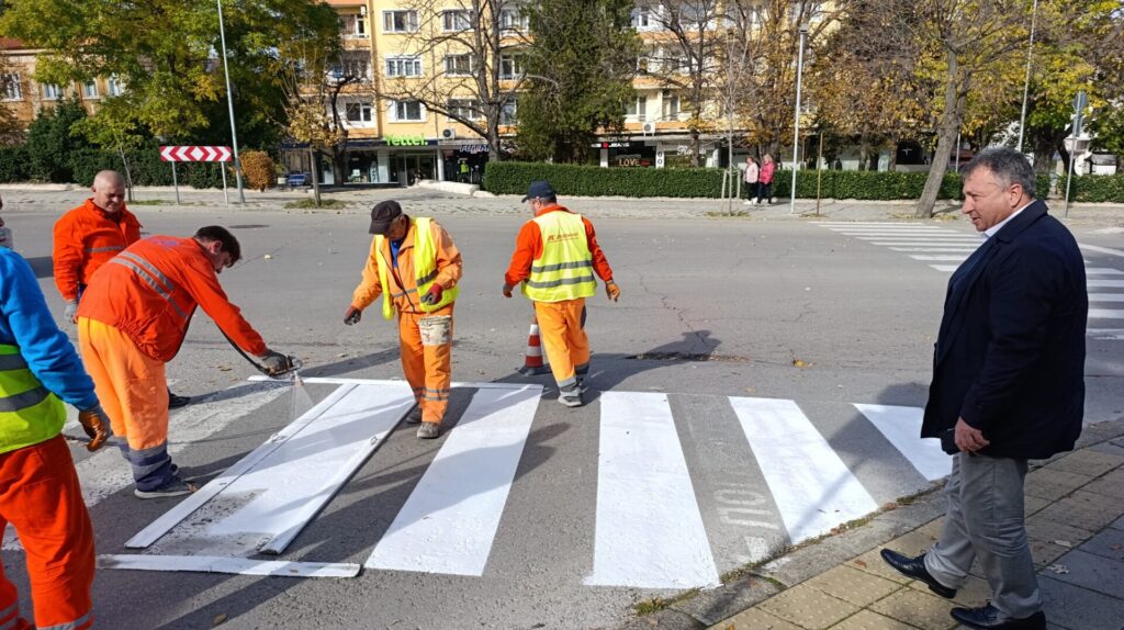 Полагат нова хоризонтална маркировка в Шумен. Кметът проф. Христо Христов провери началото на дейностите, които започнаха от бул. „Славянски“, съобщиха от пресцентъра на общинската администрация. Екипите ще продължат работа по бул. „Мадара“ и бул. „Ришки проход“. Следват пет пешеходни пътеки и стоп линии по ул. „Цар Иван Александър“, а после – по улици в кв. „Боян Българанов, в кв. „Тракия“, в района на болницата и др.