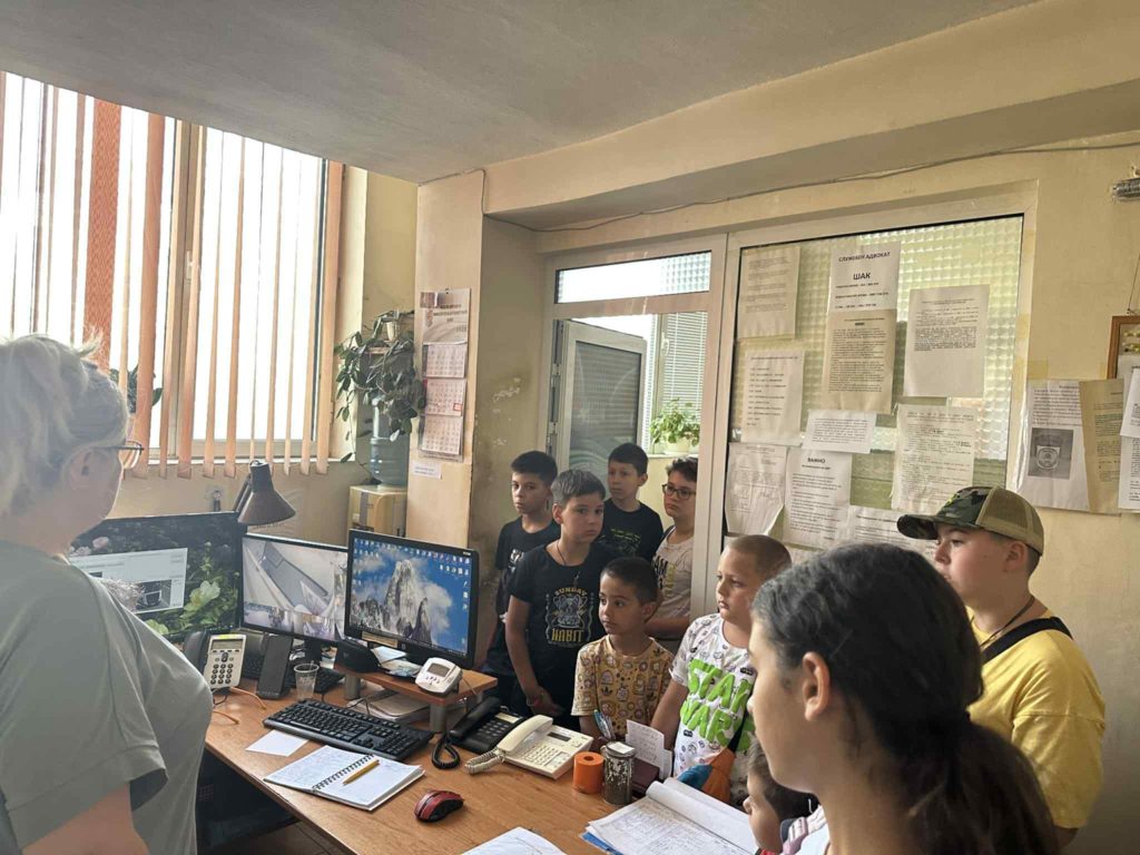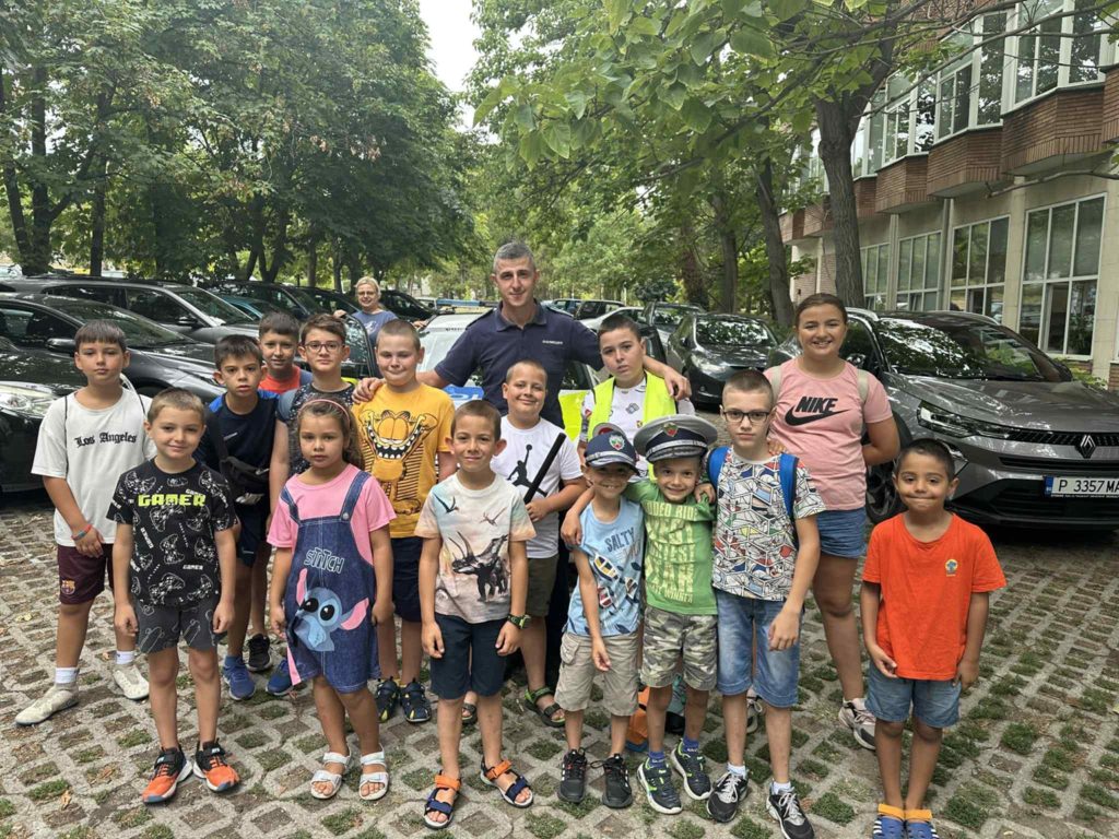 Полицай Ивайло Панайотов, водач на служебно куче в полицията им разказа последователността в етапите на обучение и специалните техники, на които учат във времето своите приятели. При посещение на децата в районното управление в града полицейският служител Бисер Благоев им показа помощните средства, които съпътстват ежедневната им работа- значка, светлоотразителна жилетка, щит, белезници, палка, каска.