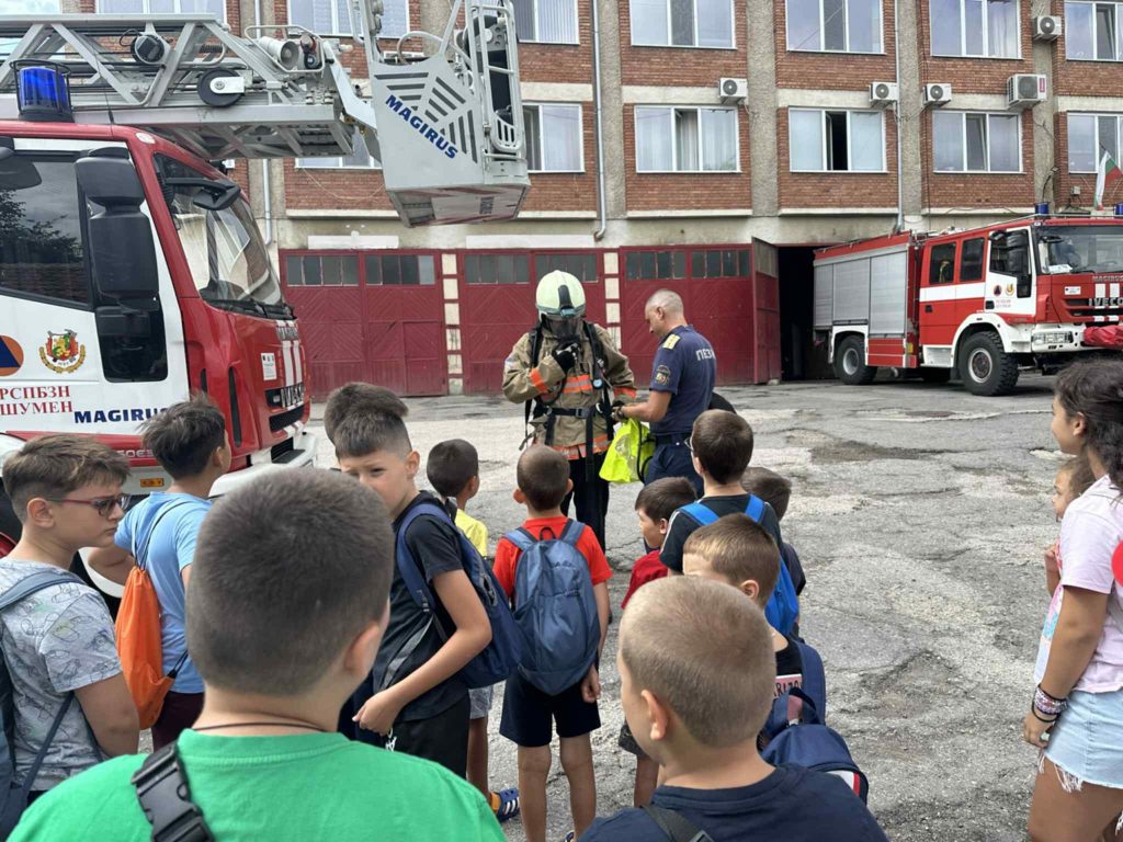 От инсп. Тунай Юнуз от пътната полиция получиха ценни съвети за своята пътна безопасност в летните месеци. Затвърдиха знания при пресичане, при управление на велосипед, тротинетка и като пътници в превозни средства. Инсп. Иван Табаков от РСПБЗН – Шумен и пожарникарят Мехмед Мехмедов запознаха децата с дихателен апарат, начините му на действие и в кои случаи се използва.