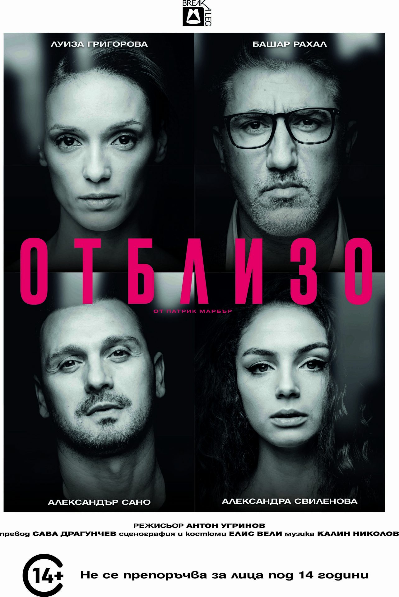 Постановката “Отблизо”, по която е създаден и филмът „Closer” от 2004 година, беше адаптирана за българската сцена и вече се срещна с над 30 000 зрители от цяла България. След последните редакции „Отблизо“ е вече с категория 14+, което я прави достъпна за по-широк кръг зрители. Режисьор е Антон Угринов, сценографията и костюмите са дело на Елис Вели, а музиката на Калин Николов.