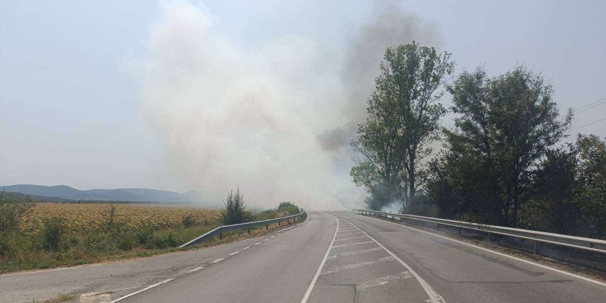 Сигнал за пожар в сухи треви затвори пътя Шумен-Карнобат, близо до моста на Камчия край село Ивански. Участъкът е силно задимен. Създадена е организация за обходен маршрут през селата Кълново и Ивански.