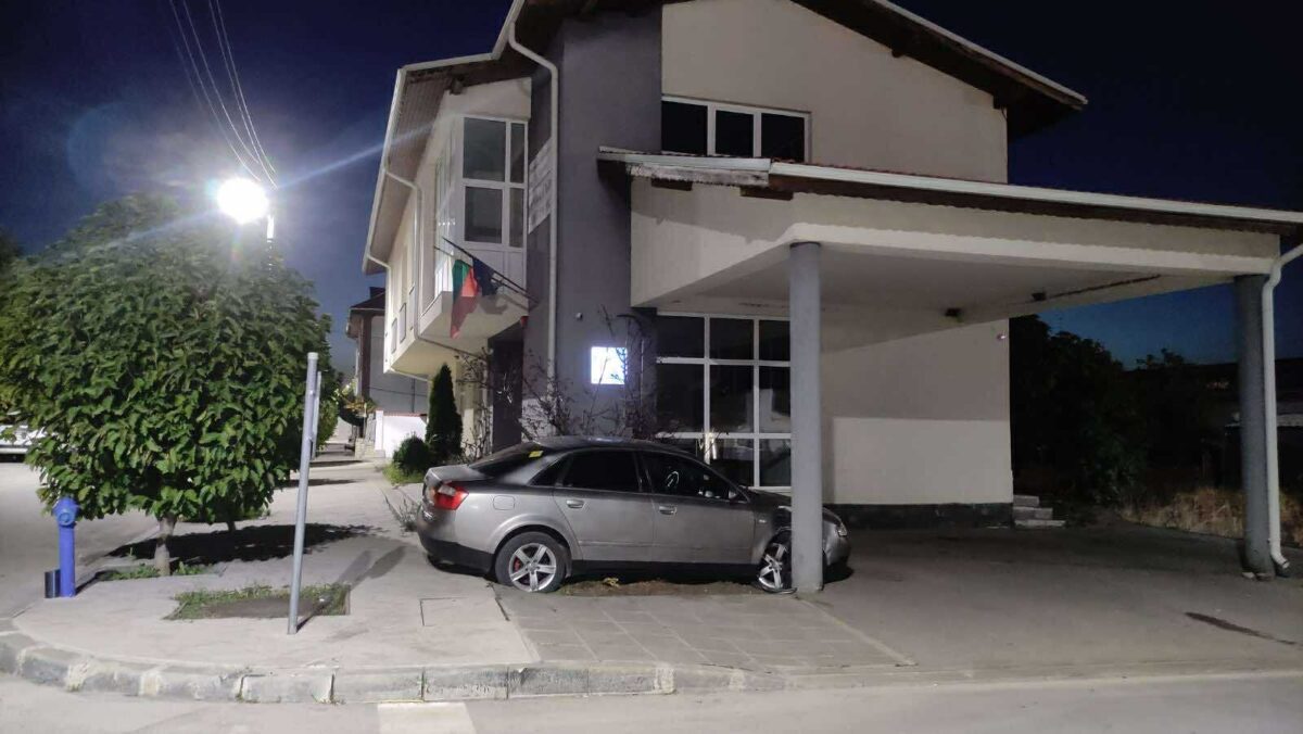 Продължил да се движи в селото, като малко след това се ударил в колона на сградата на полицейския участък в Хитрино. На място е  установено, че зад волана на колата е 35-годишен мъж от село Тимарево.