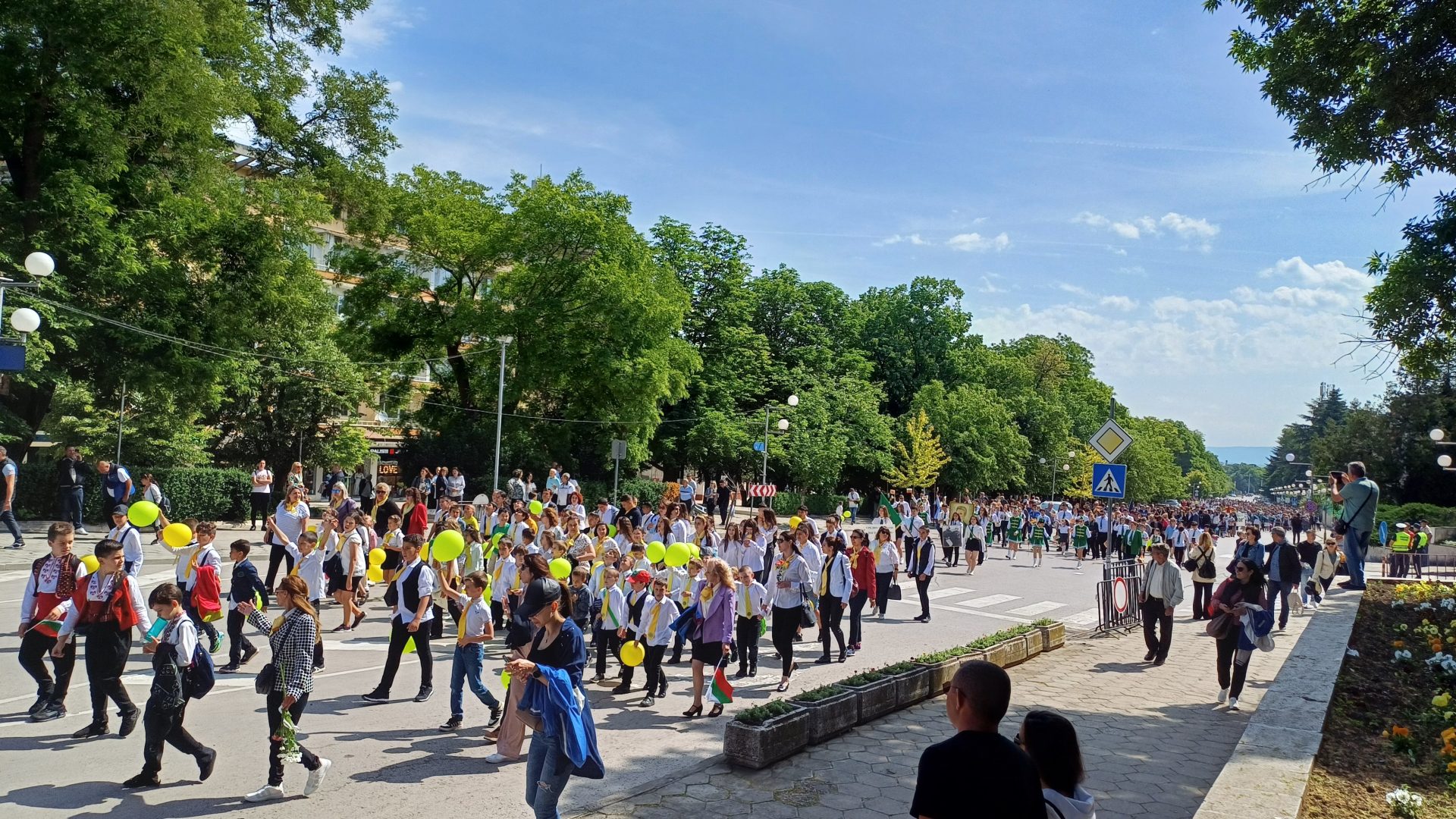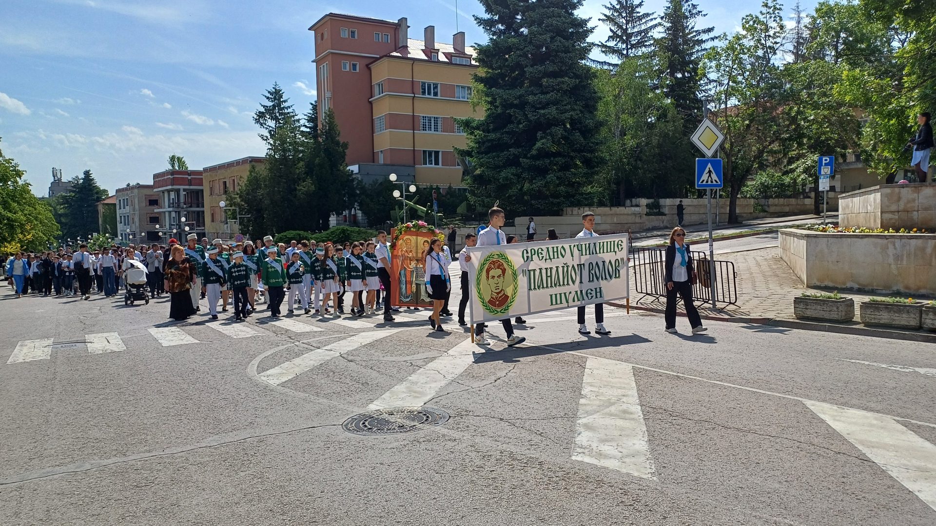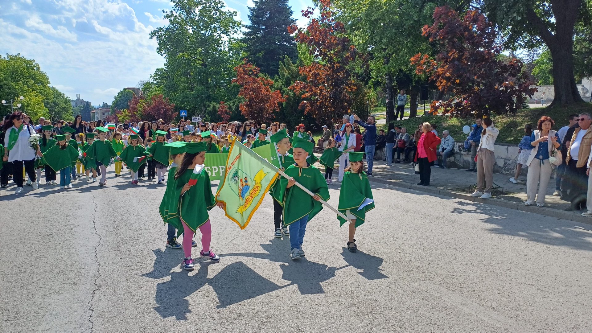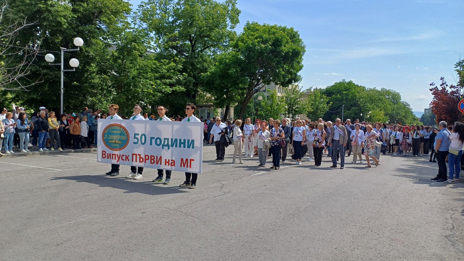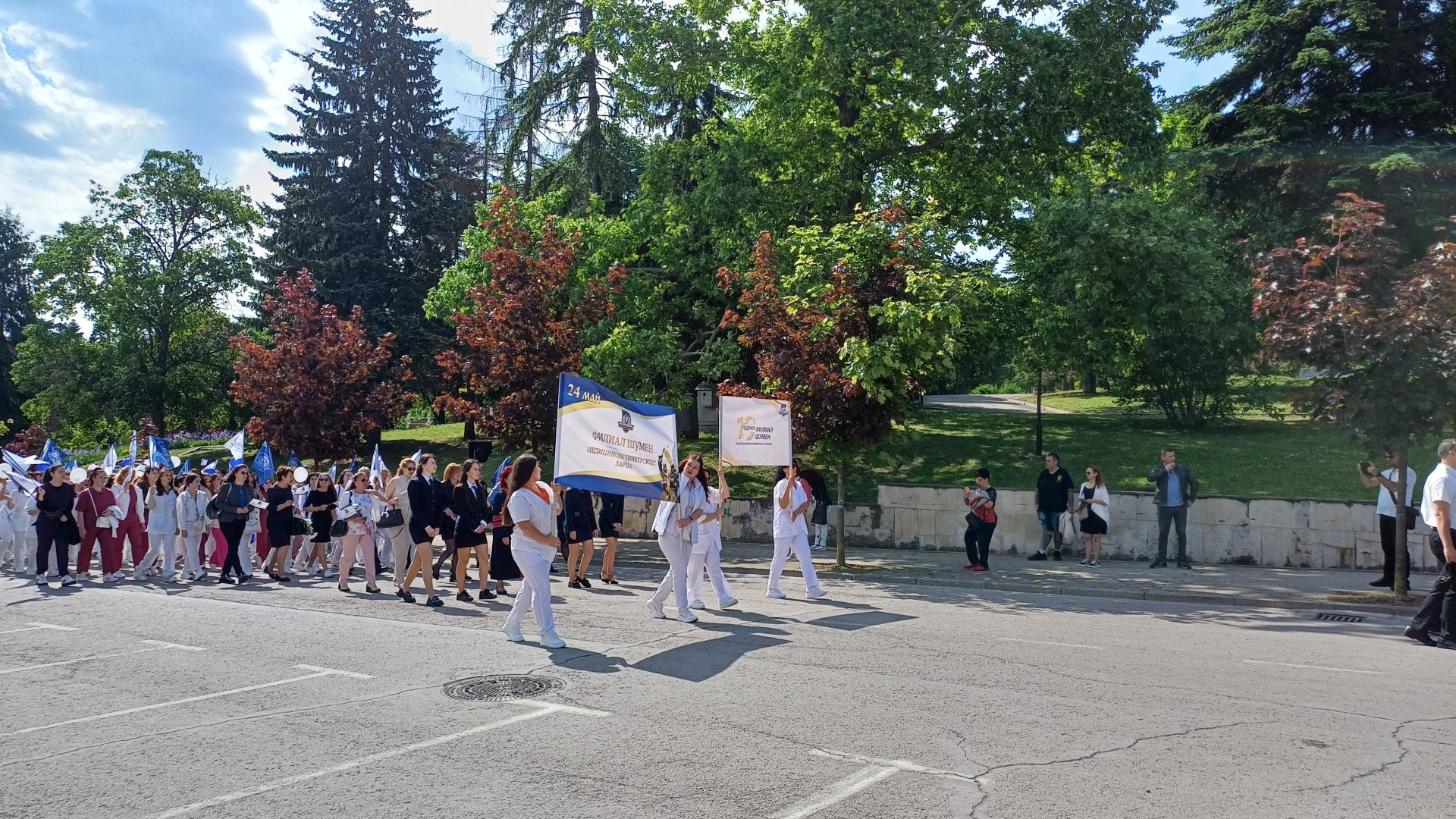 Деца от детските градини, ученици, учители, студенти и преподаватели от Шуменския университет „Епископ Константин Преславски“, от Филиал Шумен на Медицинския университет във Варна, от Факултет „Артилерия, ПВО и КИС“, творчески формации, спортни школи, културно-просветни институции, звена за извънкласна дейност и граждани преминаха в празничните блокове по централния булевард „Славянски“ от площад „Кристал“ до сградата на Община Шумен.