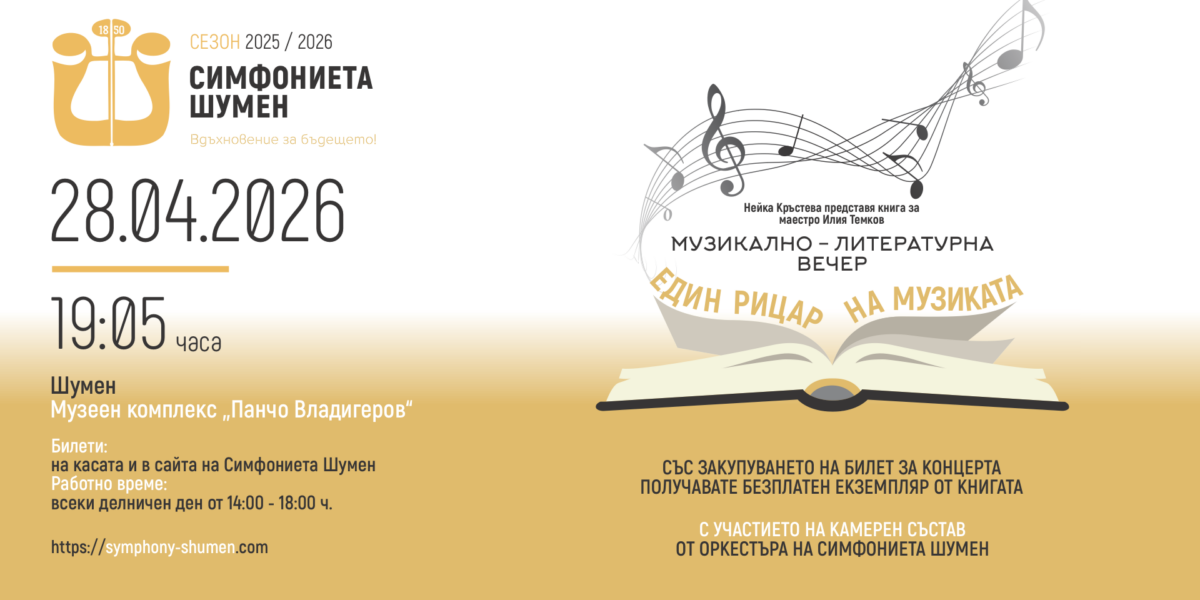 Музикално-литературна вечер, посветена на изключителния български диригент маестро Илия Темков, ще представи Симфониета-Шумен. Събитието ще се състои на 28 април от 19:05 ч. в Музеен комплекс „Панчо Владигеров“.