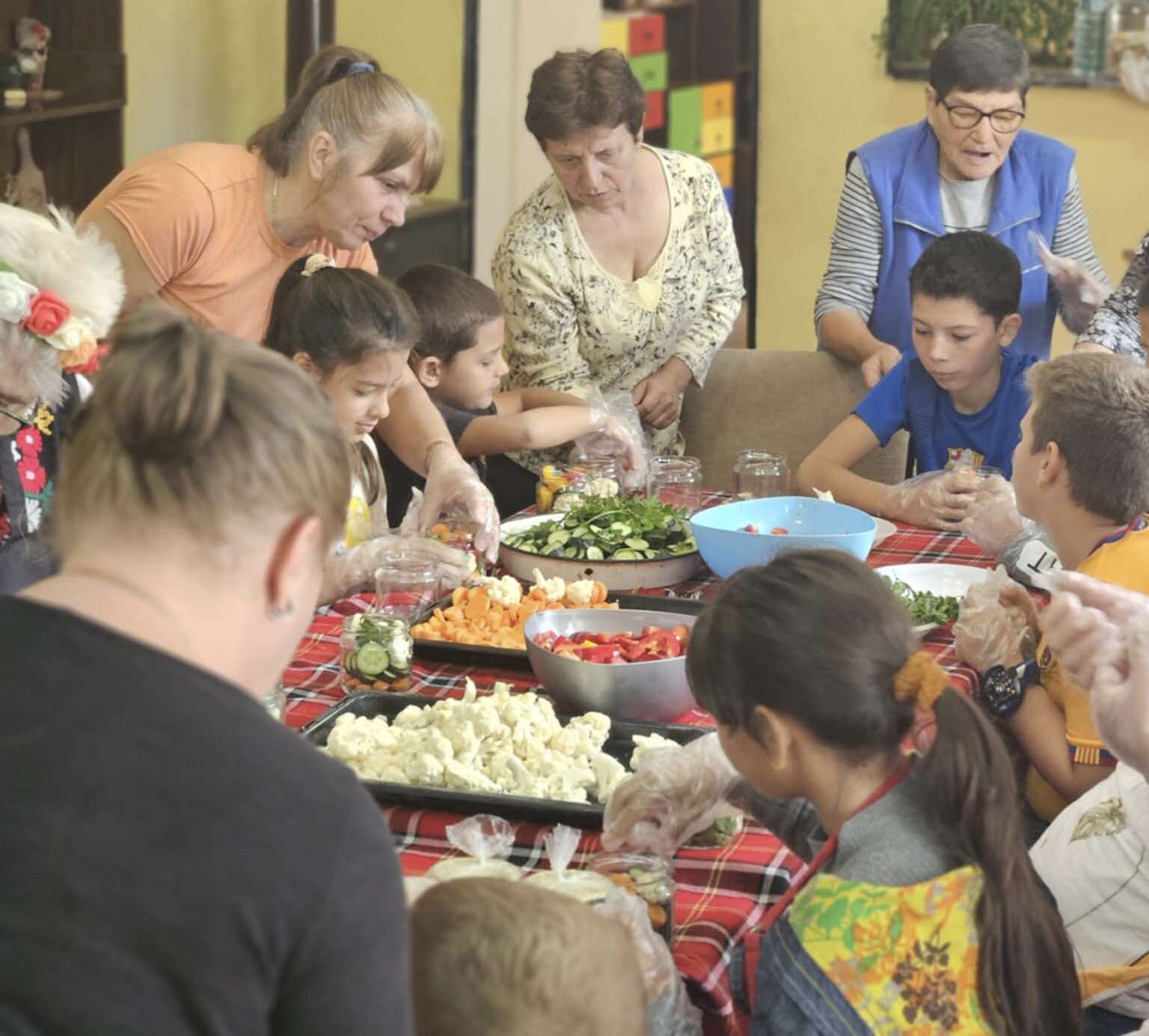 Със своите златни ръце и неуморим дух, тя преведе децата през всяка стъпка от процеса – от подготовката на зеленчуците до финалното затваряне на бурканите.