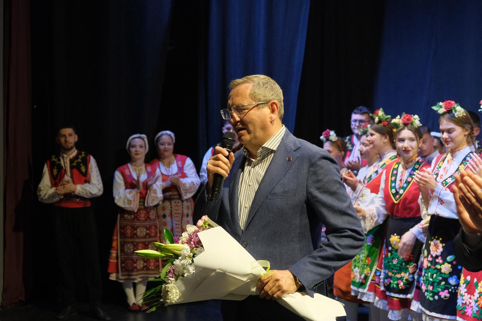 Младите изпълнители излязоха на сцената заедно с директора на Средно училище „Сава Доброплодни“ Албена Иванова-Неделчева и преподавателите Борис Иванов, Мирослав Минчев, Веселка Антонова и Галина Георгиева. Програмата включваше фолклорни танци, представени от танцовия състав „Луди млади“, народен хор, гайдарски оркестър и солови изпълнения. Сред официалните гости бяха заместник-кметът по образование и култура Даниела Савчева, председателят на комисията по култура към Общински съвет – Шумен Венцислав Венков, кметът на Айвалък Месут Ергин, както и семейство Несрин и Фикрет Индже.