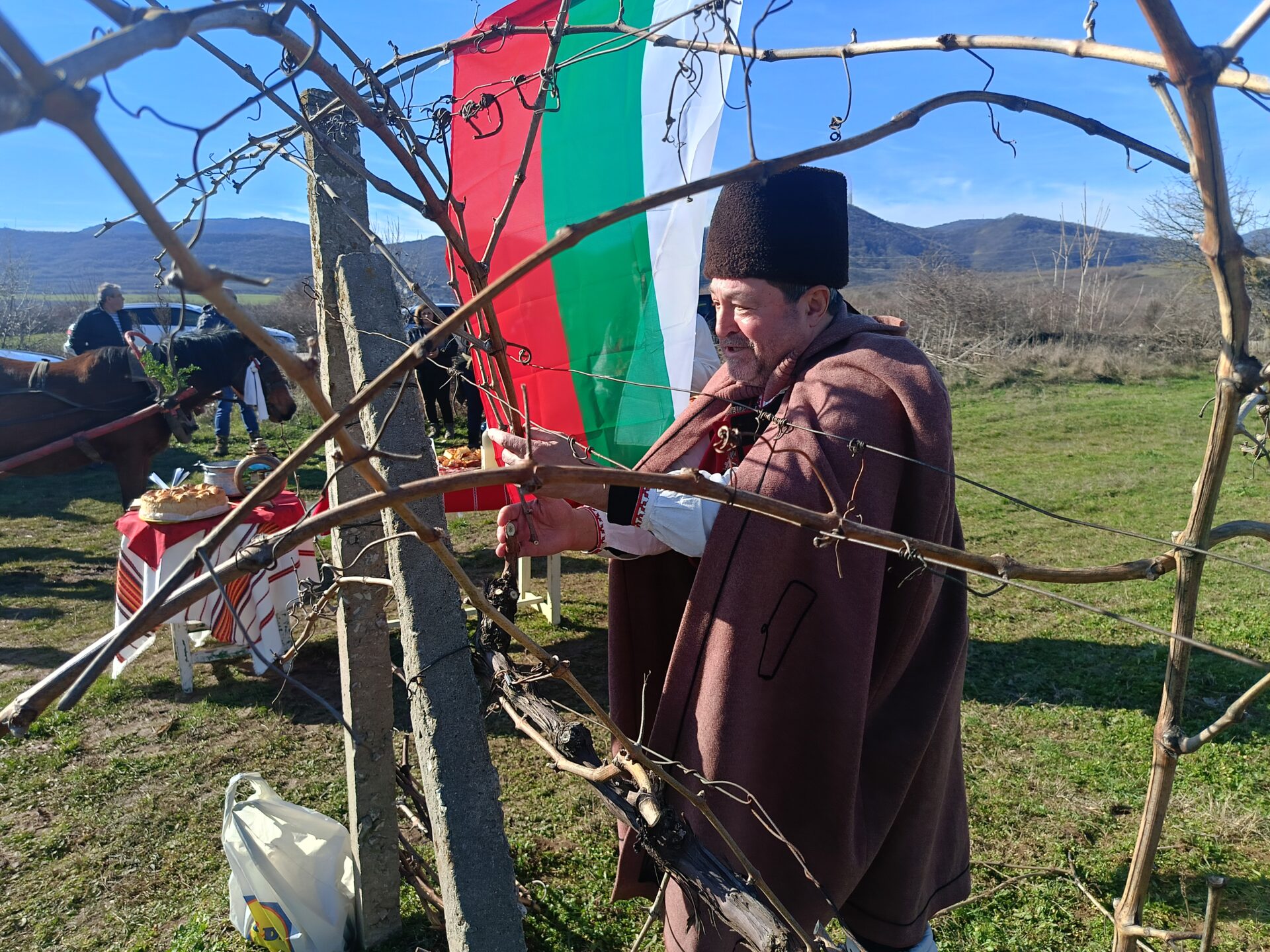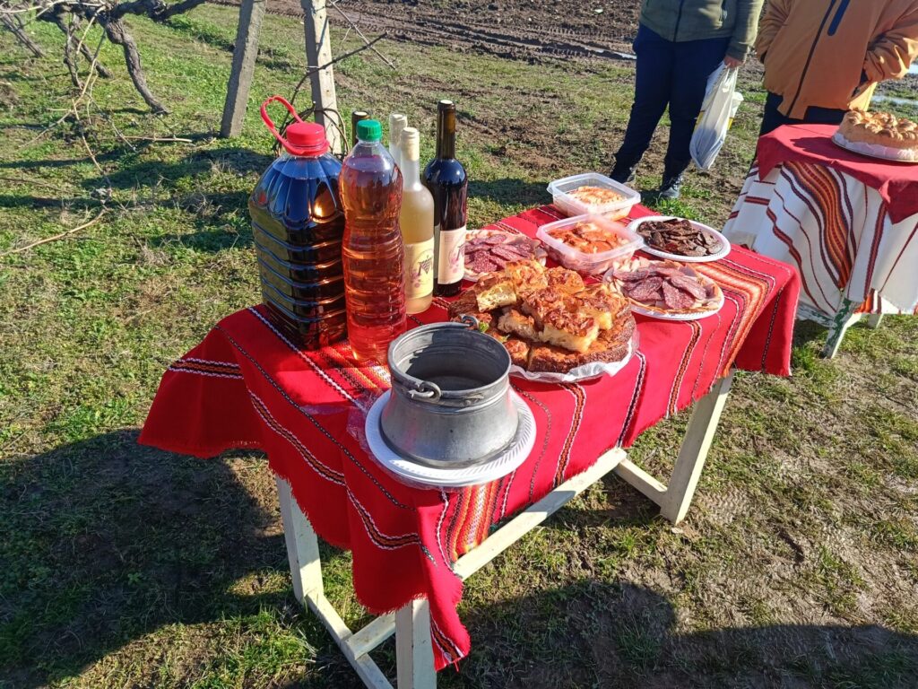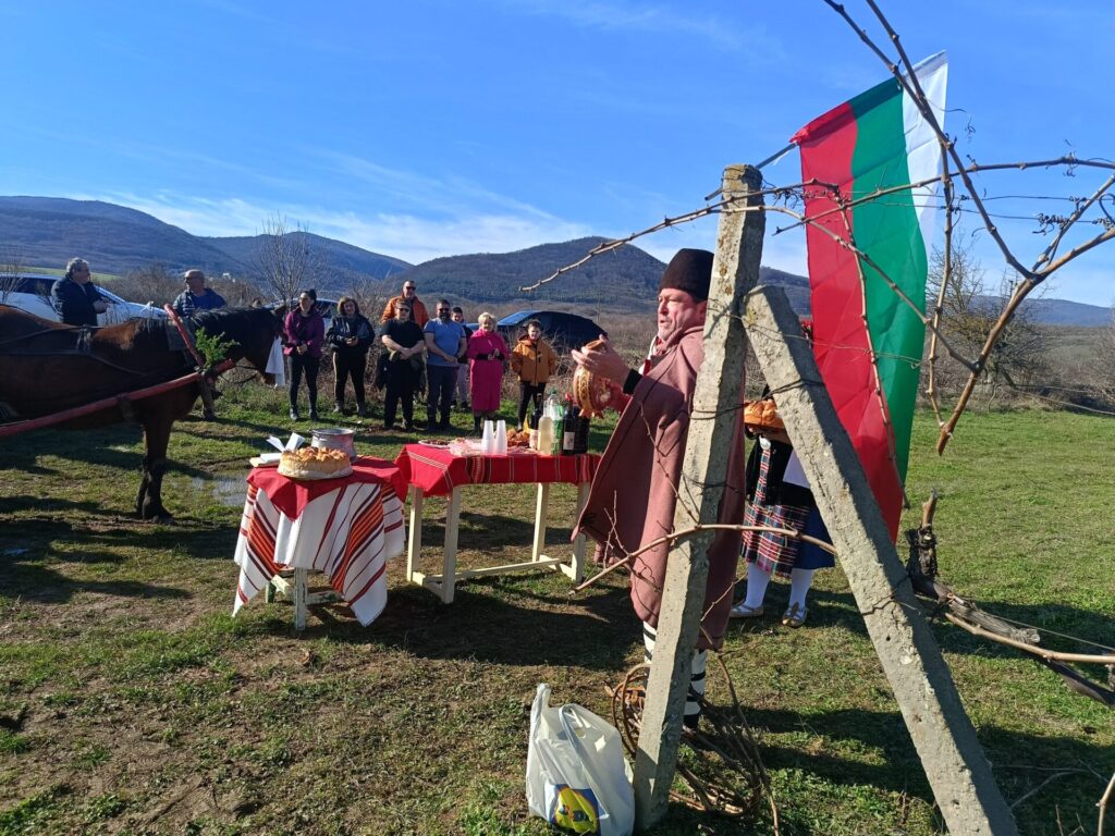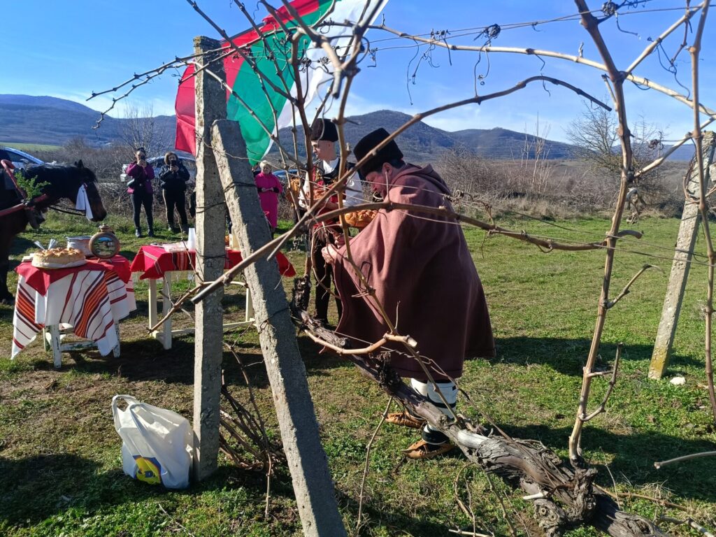 Ритуалът по зарязването на лозята пресъздадоха самодейци и пожелаха здрава и плодородна година. Домакинът Петър Петров заряза ритуално първите лозови пръчки, поля с червено вино корените за берекет и нарече да е богата годината и пълно с грозде лозето. Той и семейството му отглеждат 7 декара димят – стар български сорт.