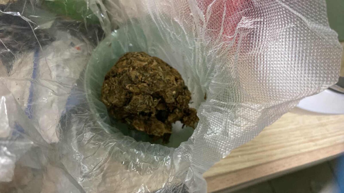 При последвалото претърсване в колата е намерено оръжие, най-вероятно газово, без документи. В дома на мъжа е намерено бяло кристалообразно вещество с маса около 1 грам, което предстои да бъде изследвано.