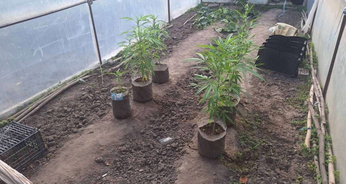 Намерени са шест растения от рода на конопа в саксии, около един грам суха листна тревна маса, по данни на 57-годишния мъж – марихуана, 10 семена марихуана и един боеприпас.