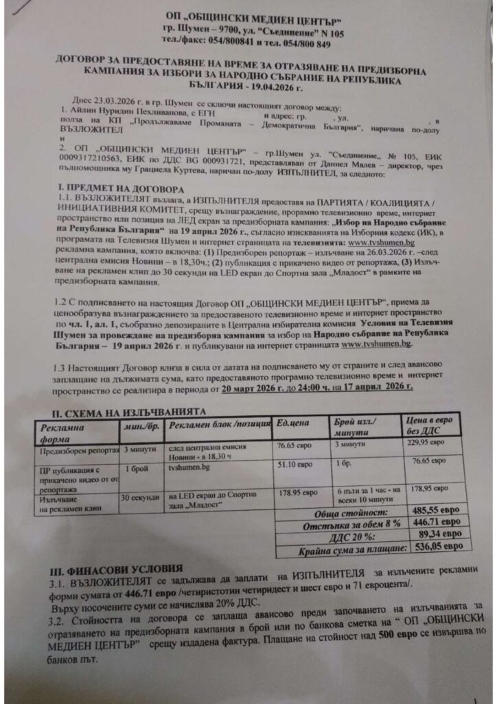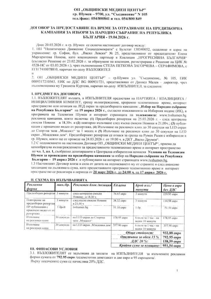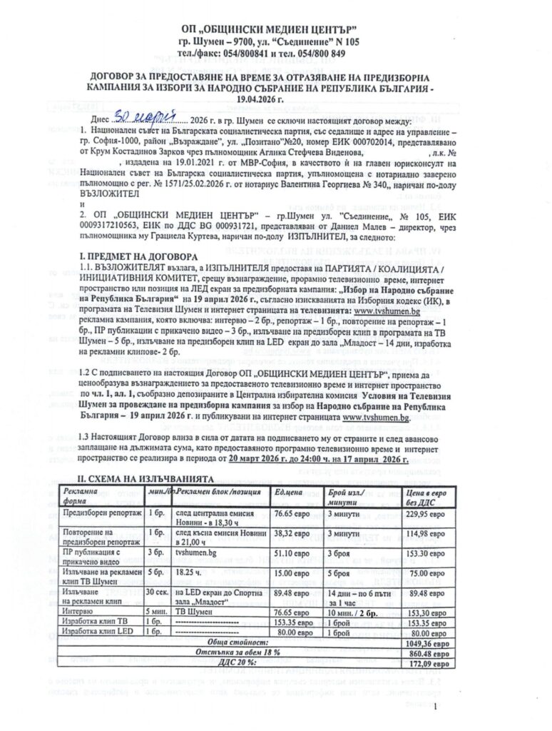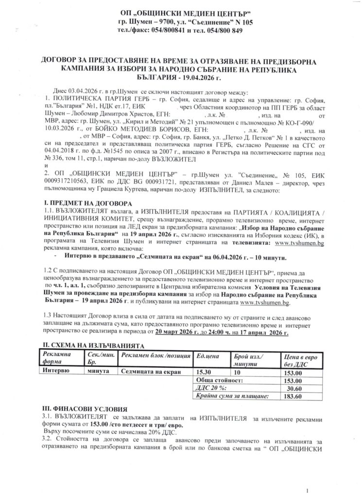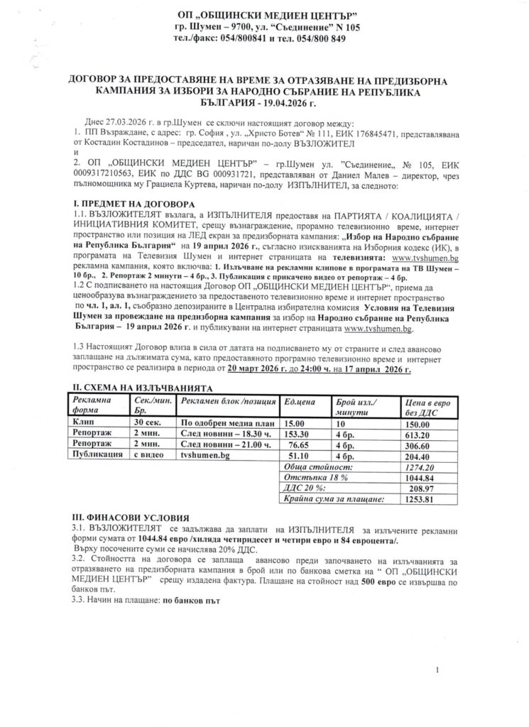 Документи Парламентарни избори 2026 - Телевизия Шумен