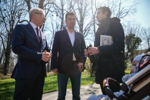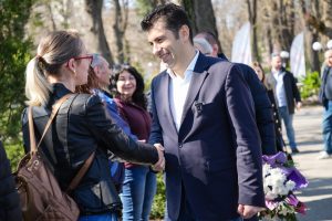 В градската градина Петков и акад. Денков поговориха с майки за бъдещето на техните деца. Двамата поднесоха букети на паметника на Тодор Колев.