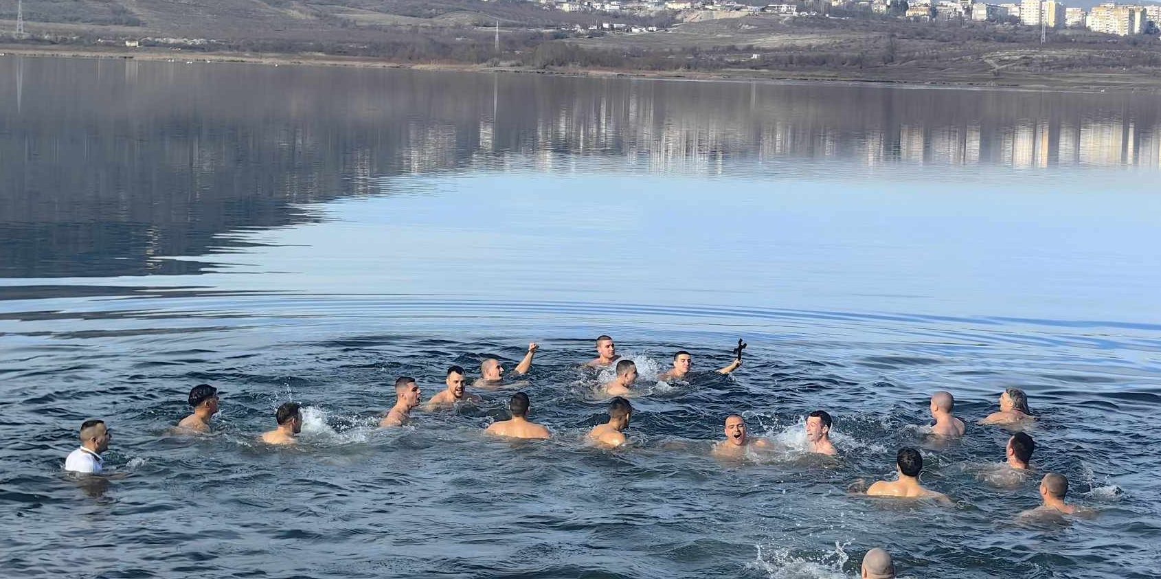 Кръстът беше благословен и хвърлен във водите на езерото от игумена на манастир „Свети Пантелеймон“ в Патлейна отец Константин.