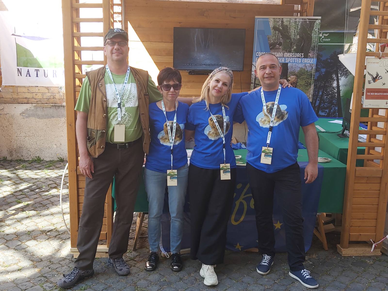 Изпълнителната агенция по горите, Североизточното държавно предприятие и Югоизточно държавно предприятие представиха дейността по проект „Земите и горите на орела“ (LIFE18 NAT/BG/001051), чиято основна цел е дългосрочно опазване популацията на малкия креслив орел, чрез защита и устойчиво управление на гнездовите и хранителни местообитания на вида, както и създаване на нови такива. На открит щанд екипът по проекта представи различни информационни материали за проекта, традиционни български продукти и брошури за дейността на предприятията.