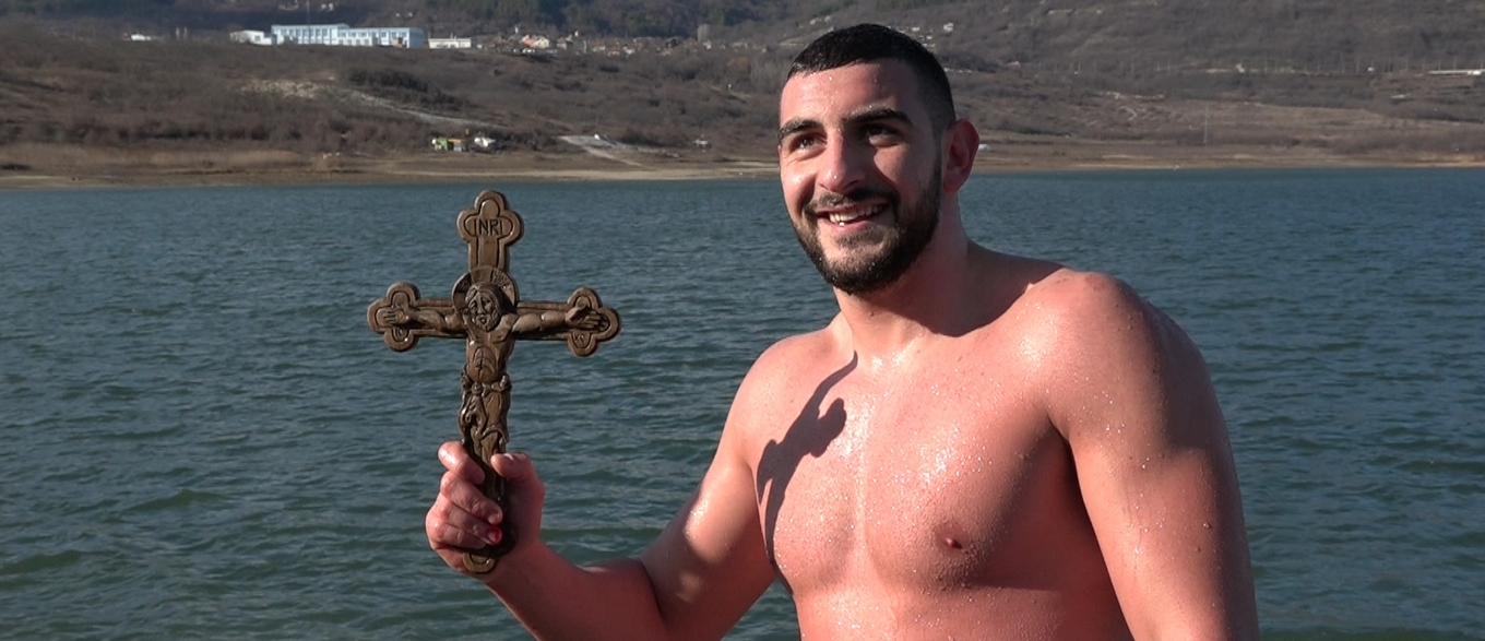 Десетки се включиха в ритуала по хвърляне на богоявленския кръст във водите на шуменското езеро. Най-бърз бе 22-годишният Добромир, който е полицай. Първи стигна до дървеното разпятие, хвърлено във водата от отец Константин.