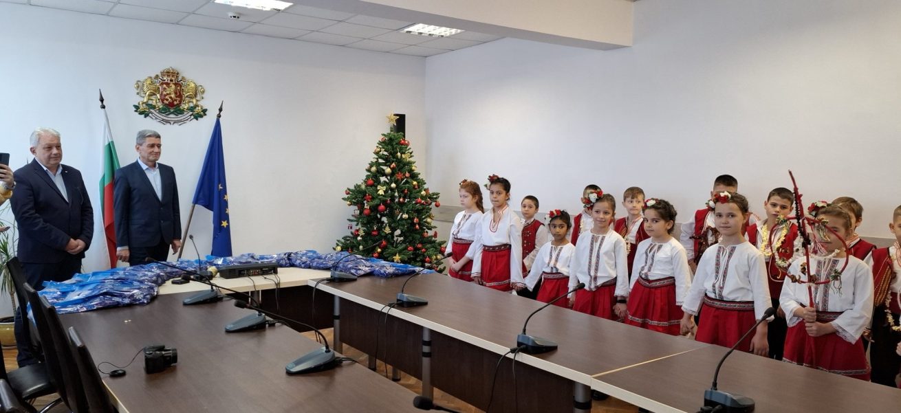 След това децата и служителите в областната администрация се размениха и традиционните подаръци, съпроводени с много благопожелания и добро настроение, за което учениците се бяха погрижили с богатата фолклорна програма, която бяха подготвили.