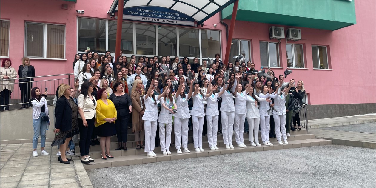 На 12 май светът отбелязва Деня на медицинската сестра, който се чества се официално от 1974 г. Шуменският филиал на Варненския медицински университет отбеляза празника, като бъдещите медицински специалисти пуснаха 10 гълъба да полетят в небето.