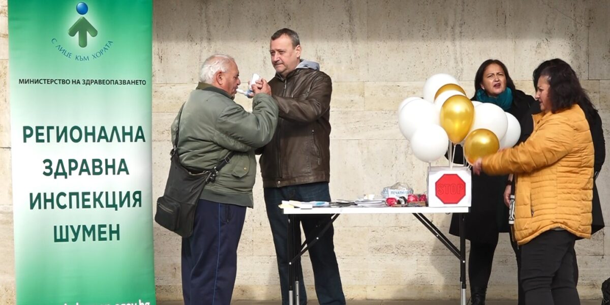 „Това е т.нар. „ смокърлайзер“, който измерва нивото на въглеродния диоксид в организма. Целта ни е чисто информативно да дадем насоки на активните и пасивните пушачи какво да направят ако имат високи нива на въглероден окис в кръвта и в издишания въздух. Приготвили сме им и различни информации, свързани с тютюнопушенето, употребата на алтернативните тютюневи изделия. Ясно сме отправили посланията, че безопасно тютюнопушене няма“, обясни Петър Дилов, старши експерт в РЗИ-Шумен.