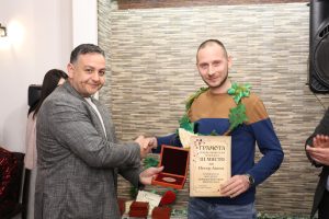Наградата в категория „Вино на годината“ получи Петър Анков представил се с бяло вино сорт „Алиготе и Врачански мискет“.