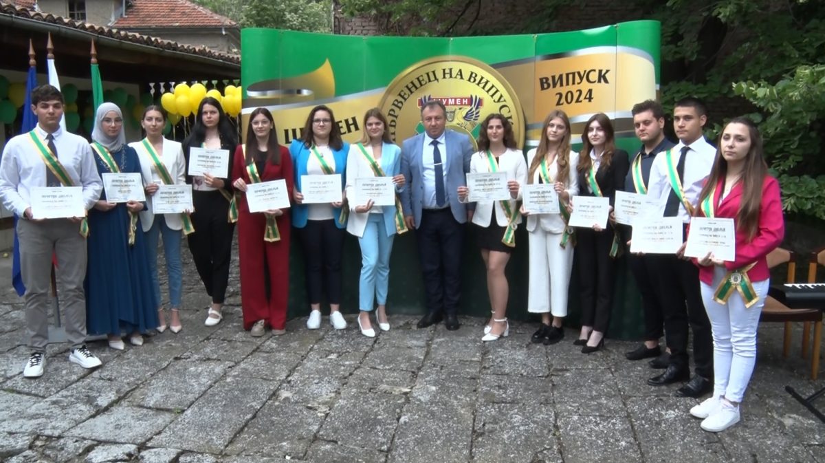 Отличниците на Випуск 2024 бяха отличени със специални награди. На тържествена церемония 13 изявени зрелостници от всички училища в града получиха диплом за отличен успех и медал с лента в цветовете на знамето на Шумен.