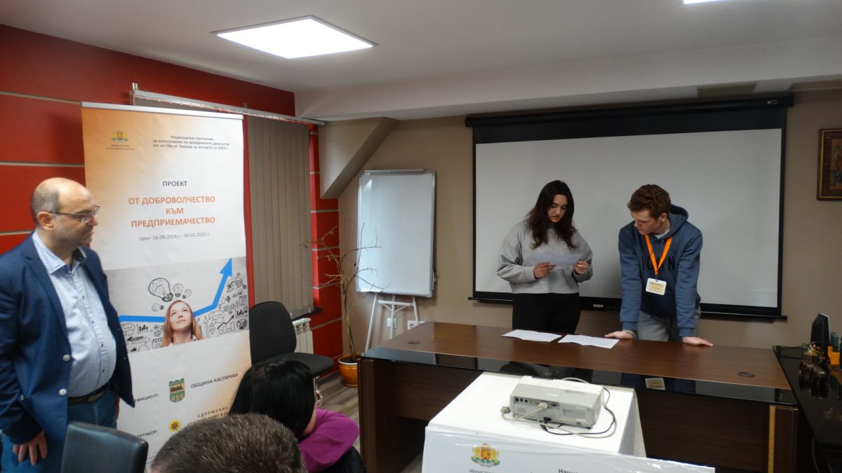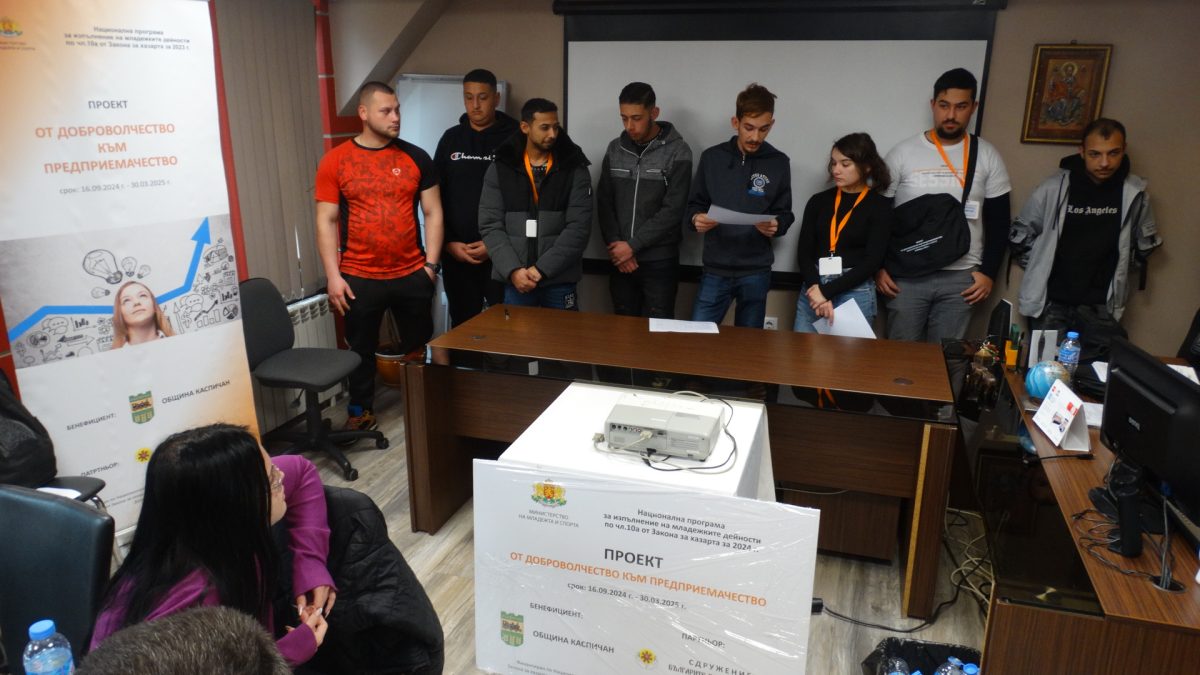 Обучение на младежи от община Каспичан провокира тяхната креативност в създаването и реализирането на бизнес идея. Такава за нов салон за красота представи екипът на Хюсеин Мехмед. Дейностите са част от реализацията на проект „От доброволчество към предприемачество“.