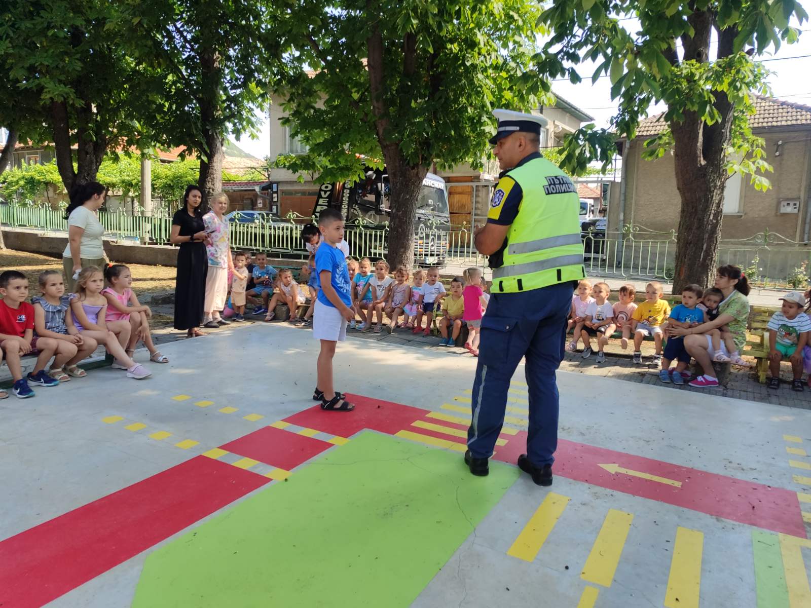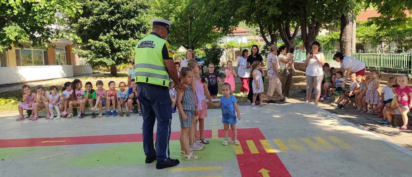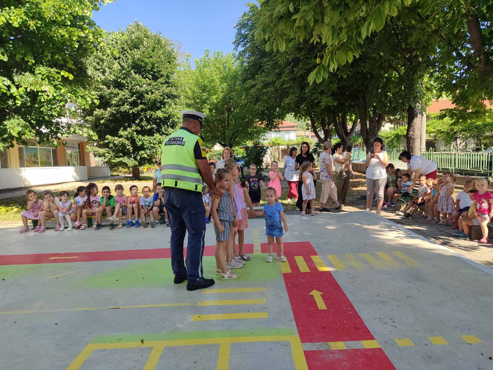 Полицейските служители им разказаха, че не трябва да излизат сами на пътя, а само с родители, да не напускат детските площадки на които играят и са близо до пътното платно. Напомниха им да управляват велосипеди с помощни колела само в парка. Децата разгледаха оборудването на пътните полицаи и си направиха снимки за спомен в автомобилите.