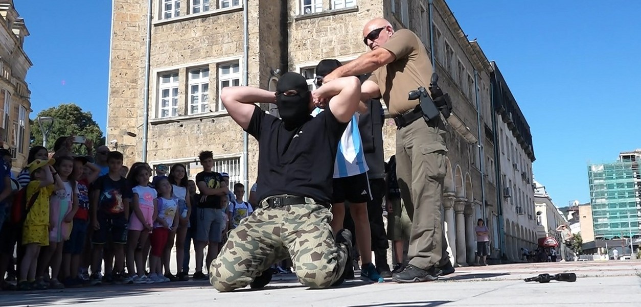 Шуменските полицаи приковаха вниманието на децата още с демонстрацията на оръжия и спецоборудване. Децата станаха свидетели как спецполицаи обезвреждат и залавят въоръжен престъпник. По-смелите малчугани дори участваха в акцията и сами арестуваха мъжа.