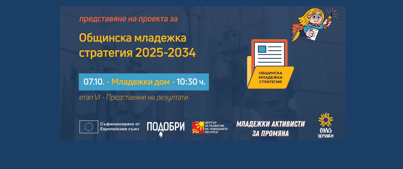 Изготвянето на Общинската младежка стратегия стартира през лятото на 2023 година по проект „Младежки активисти за промяна“, финансиран по Програма „Еразъм +“.