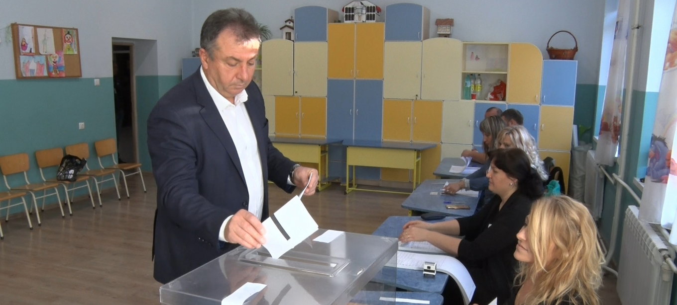 Проф. Христо Христов, кандидат за кмет на община Шумен, издигнат от Коалиция „БСП за България“, гласува в Начално училище „Илия Блъсков“.