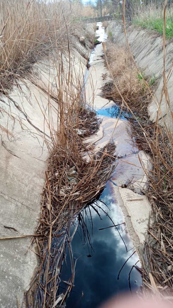 Констатирано е черно оцветяване на водите на дерето и слабо изтичане на инфилтрат в охранителната канавка на депото. Инфилтратът е бил с малък дебит и е постъпвал подпочвено от пукнатини и компрометирани места на отводнителната канавка и поради малкия му отток не са взети водни проби от отпадъчни води.