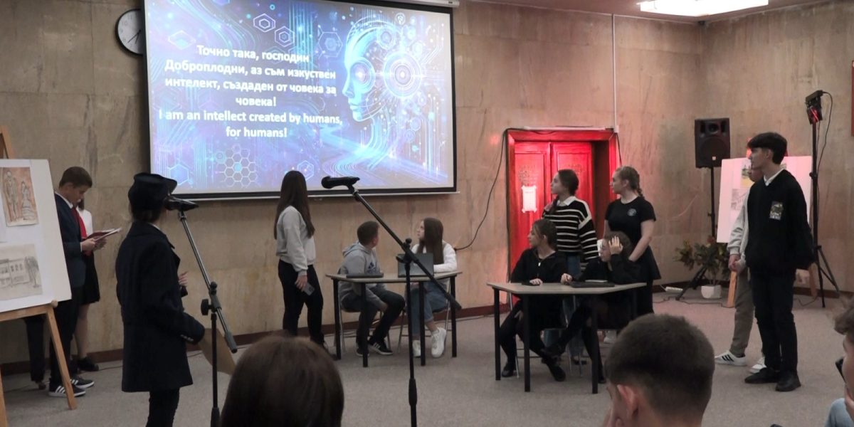 Осмокласниците от СУ „Сава Доброплодни” представиха спектакъла „Авариен протокол „Сава”, в който пренесоха своя патрон от XIX век в бъдещата класна стая, оборудвана с изкуствен интелект.