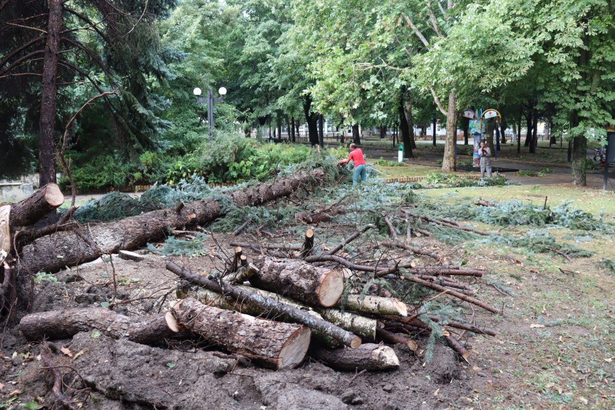 Проливен дъжд и ураганен вятър изтръгнаха дървета в град Нови пазар. Опасната буря се разразила малко след 19 часа вчера над града и околните села. „Няма данни за пострадали хора или повредено частно или общинско имущество“, каза за Телевизия Шумен кмета Георги Георгиев. „Още снощи, след преминаване на разразилата се буря градоначалникът е извършил обход на голяма част от града със служители на Общинско предприятие „Нови пазар“ и са набелязани мерки за възстановяване на щетите от силния вятър. Рано сутринта, служителите на предприятието са започнали почистване на прекършени клони, и нарязването на падналите цели дървета, за да се освободят пешеходни зони и улични платна. Мобилизиран е целия наличен състав и техника за бързото възстановяване на нормалния начин на живот. „В тази връзка моля за разбиране, търпение и съдействие от всички граждани и фирми“, допълни още кметът Георгиев. Жълт код за интензивни валежи и гръмотевична активност е обявен за 21 области и днес и Шумен е сред тях. Очаква се на тези места да паднат локални валежи между 20 – 35 мм, а на отделни места да се развият гръмотевични бури с временни усилвания на вятъра и условия за градушки.