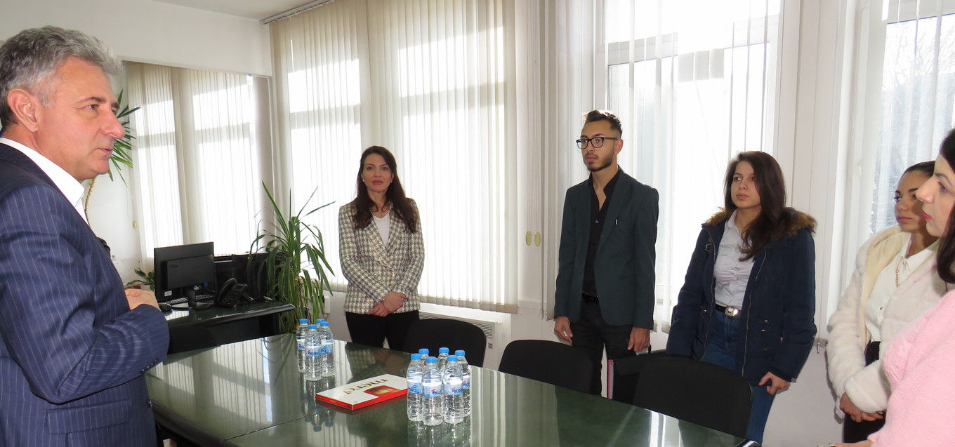 В разговор с областния управител проф. Добромир Добрев, заместник-областния управител Нели Георгиева и експерти от Областна администрация младежите, които са студенти в Шуменския университет „Епископ Константин Преславски“, споделиха предложението си за създаването на стажантска програма за студенти. Целта е чрез тази програма студентите да получат конкретна информация за работата в администрацията, да се запознаят със спецификата на дейността и с възможностите за професионална реализация.