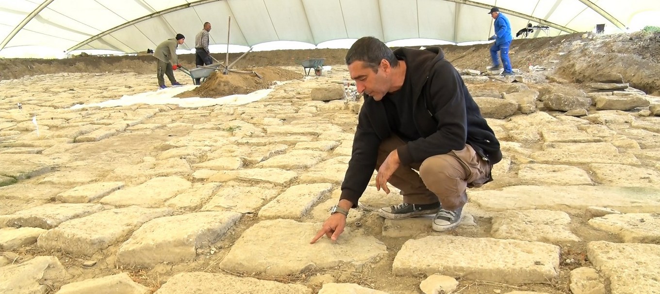 „Но е много интересно, че самата арена, самата каменна настилка е от следстоличния период, тя е от началото на XX век. Затова започнахме да вдигаме камъните, номерираме ги, вдигаме ги, проучваме какво има под тях и ги връщаме обратно. И всъщност се оказа, че под тях е имало дървена сграда, която заема абсолютно формата на каменната настилка. Все пак е имало и арена, но интересното е, че тази дървена сграда под арената, е свързана с подземен тунел, чийто друг изход е в езическия храм в цитаделата“, обясни археологът Андрей Аладжов..