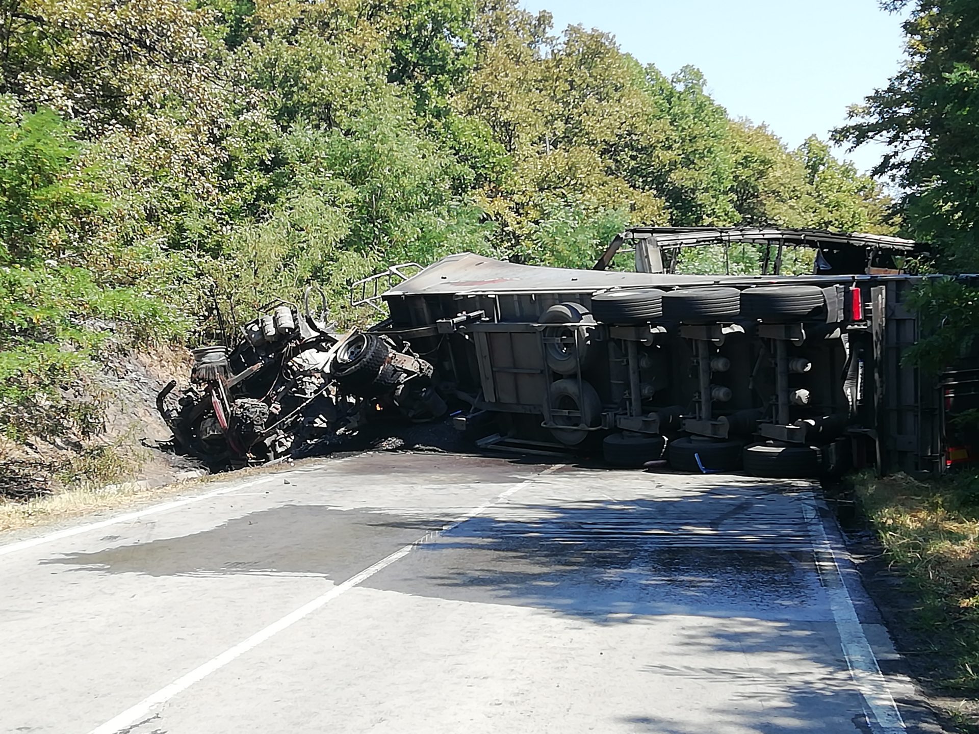Тежък пътен инцидент затвори за движение Ришкия проход в района на село Подвис, община Сунгурларе. Рано тази сутрин – минути преди 6 часа, на пътя са се ударили челно два тежкотоварни автомобила. При сблъсъка единият шофьор е загинал. Три екипа пожарникари от Карнобат и Айтос са изпратени, за да се справят с възникналия от удара пожар.
