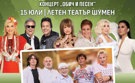 Турне „Обич и песен“ 2024 дава среща на различни стилове и жанрове обединени от музиката и за първи път гостува в Шумен на 15 юли от 20:30 часа в обновения Летен театър. Мелъди рок в лицето на „Диана Експрес“, които честват 50 години на сцена, диско-хитове от любимците братя Аргирови, класическа естрада от легендата Мими Иванова и фолклор и образци от българската поп-музика от жената – глас Нелина. Рок-легендата Силвия Кацарова и чаровната й дъщеря Теди Кацарова също участват в турнето. Жителите и гостите на Шумен ще могат да видят и легендарната Мая Нешкова.