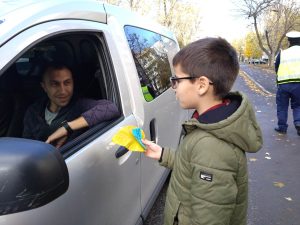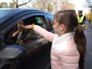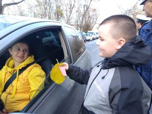 Ученици от НУ “Илия Р Блъсков“ в Шумен също подариха своите послания на водачи, които преминават покрай училището. На пешеходната пътека със съдействието на полицейските служители Галина Александрова и Милен Минев посъветваха шофьорите да бъдат по-внимателни, особено около училищата, да спират винаги на пешеходни пътеки и да шофират бавно и предпазливо.