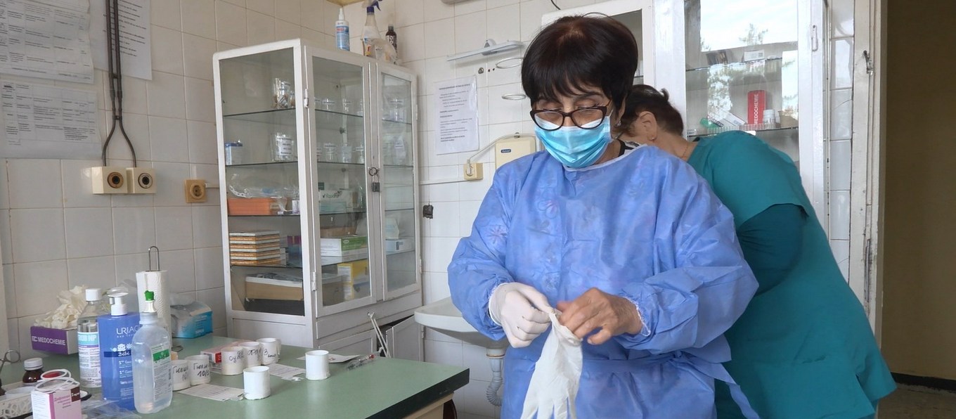 Преди да влезе в сектора за лечение на туберкулоза дежурната сестра внимателно се облича. Там в момента се лекуват шестима болни, които са в начален стадий и силно заразни.