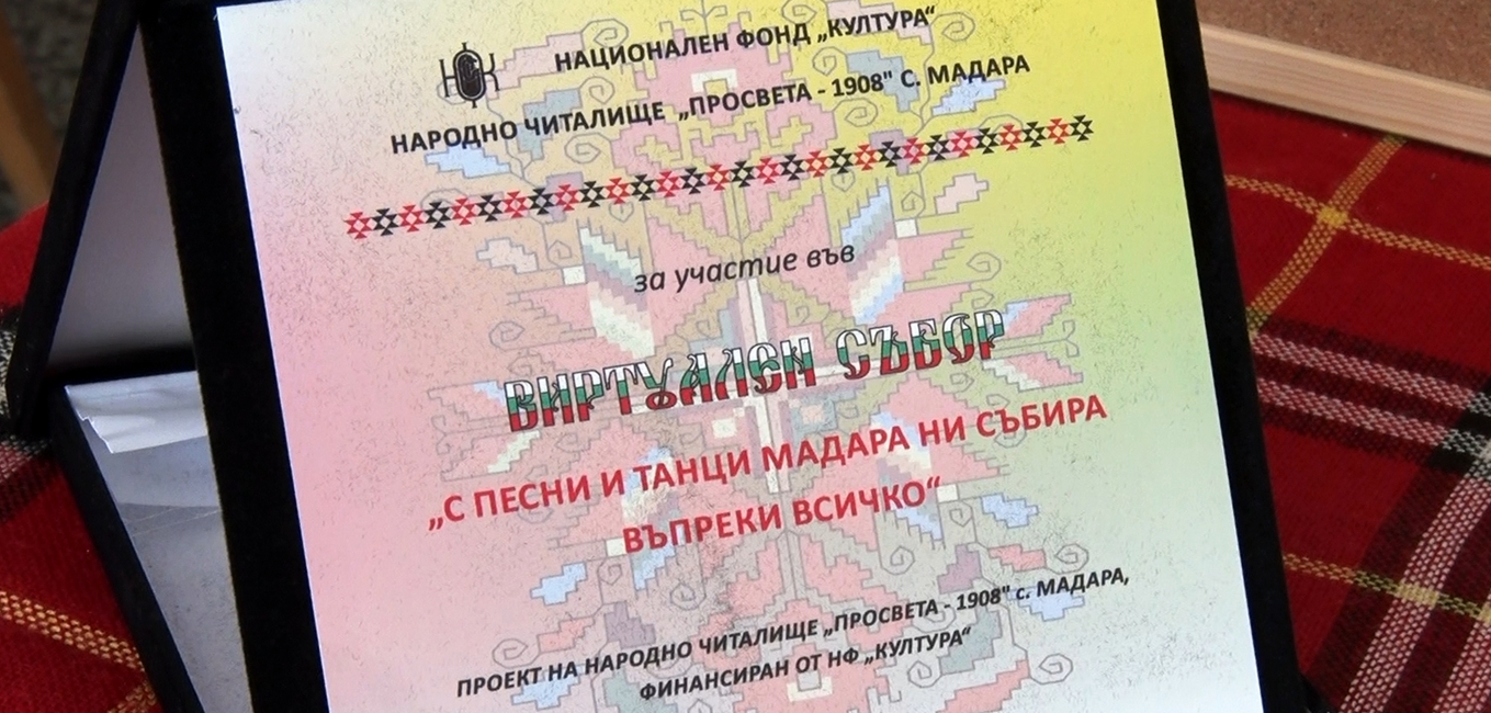 Проект “Виртуален събор с песни и танци Мадара ни събира въпреки всичко” реализира читалище ”Просвета – 1908”. Той се осъществява с финансовата подкрепа на Национален фонд “Култура”.