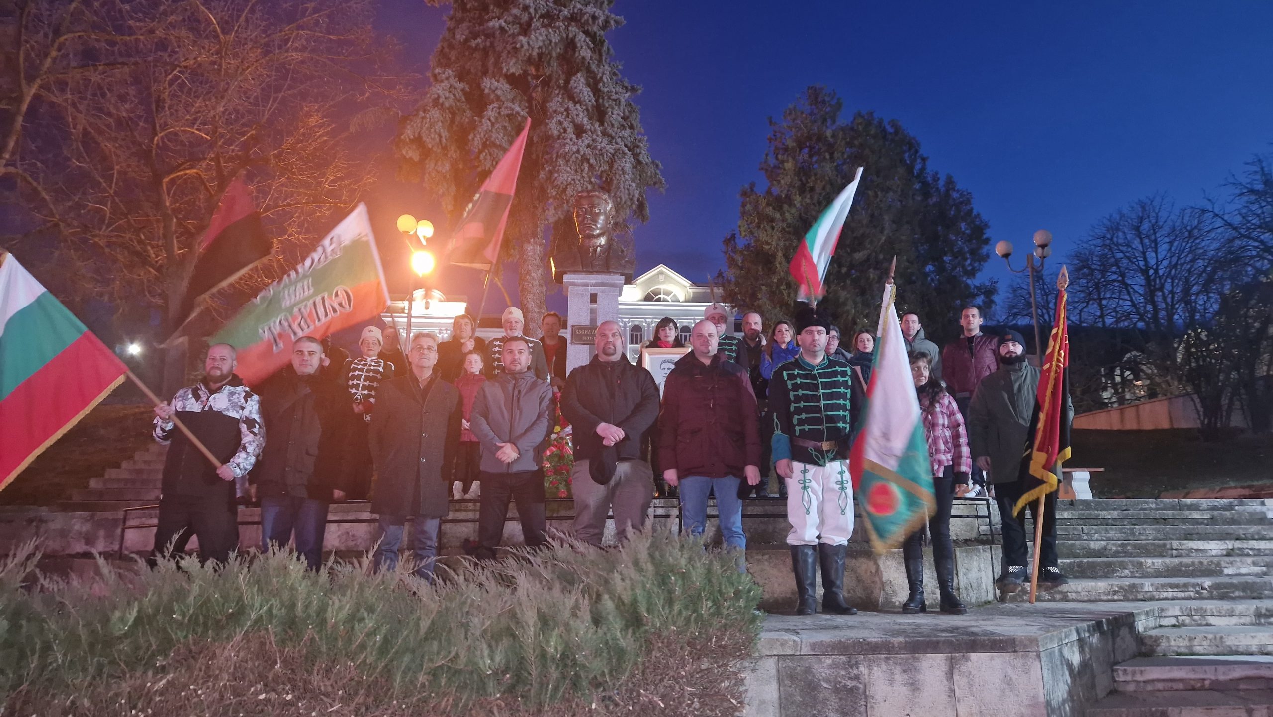 Пред паметника на Васил Левски на площад Освобождение бе поставена почетна стража, символизираща признателността на съвременните българи към делото му. В импровизирано изказване, областният координатор на ВМРО–БНД Деан Станчев подчерта, че всеки народ и всяка епоха имат нужда от своите герои, но има такива, за които не важат законите на пространството и времето. Такава фигура в българската история е Левски, като всяко поколение открива у него това, от което се нуждае като пример за подражание. Станчев подчерта, че историческата организация ВМРО продължава традициите на българските революционни организации през Възраждането, като основната й цел е обединението на българите от Мизия, Тракия и Македония. Днес това обединение може и трябва да е духовно и въпреки че днешната политическа ситуация ни изправя отново пред големи предизвикателства, това духовно обединение неизбежно ще се случи.