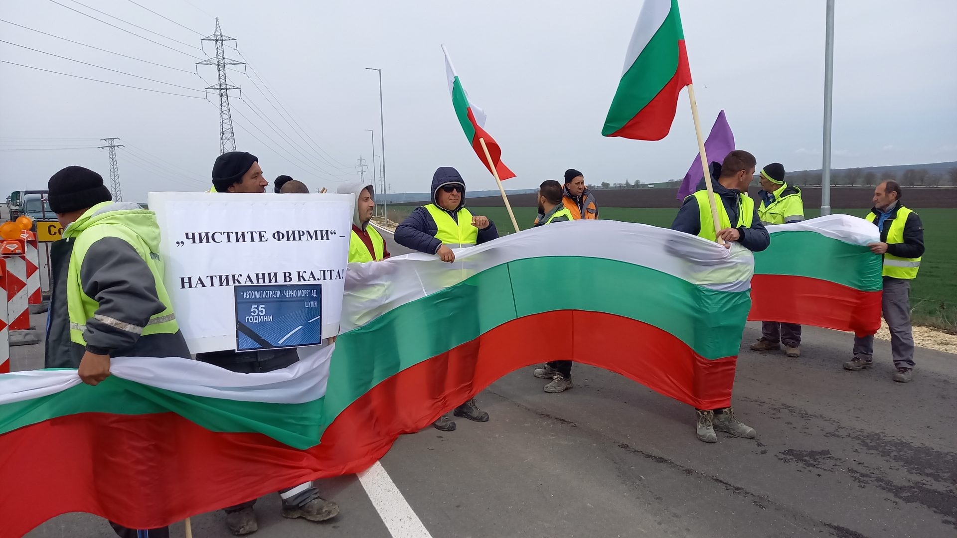 На пътен възел „Белокопитово“ на магистрала Хемус“ движението е парализирано от протестиращи работници на пътностроителната фирма „Автомагистрали Черно море“ Шумен, които все още чакат неразплатените им 28 милиона лева.