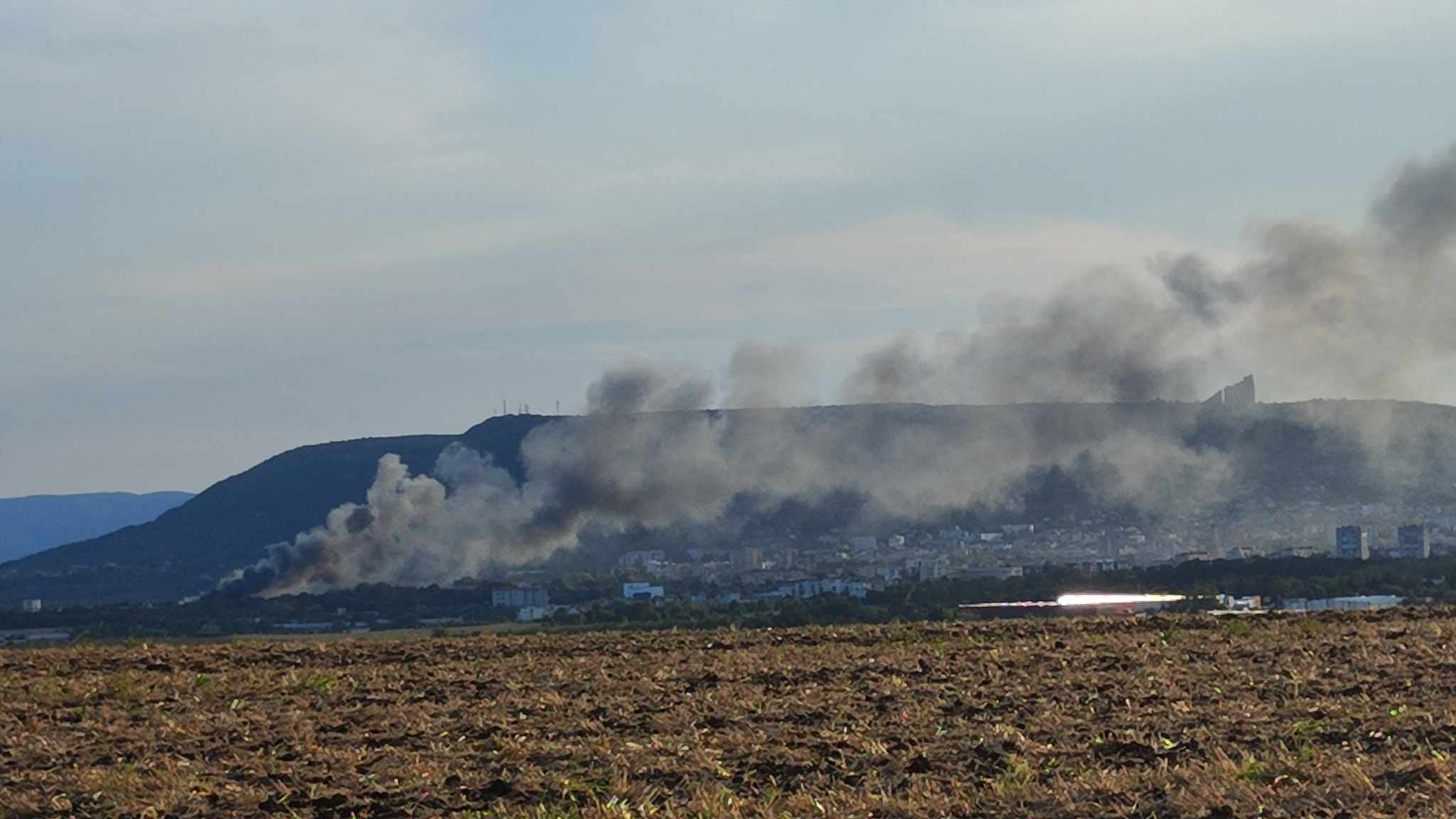 Малко по-късно от полицията информираха, че пожарът е локализиран. Гасителните действия на място продължават. На място с огнената стихия се борят 30 огнеборци с шест противопожарни автомобила. Движението в района остава ограничено.