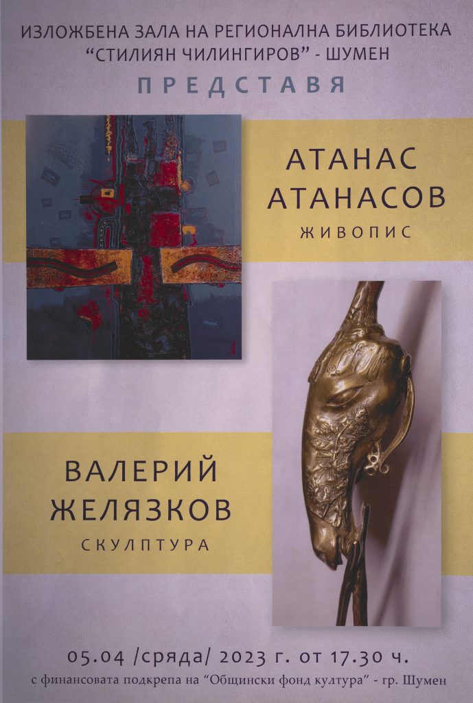 Съвместната изложба на Валерий Желязков и Атанас Атанасов, организирана с финансовата подкрепа на Общински фонд „Култура”, ще бъде експонирана в Изложбена зала на библиотеката до 13 май.