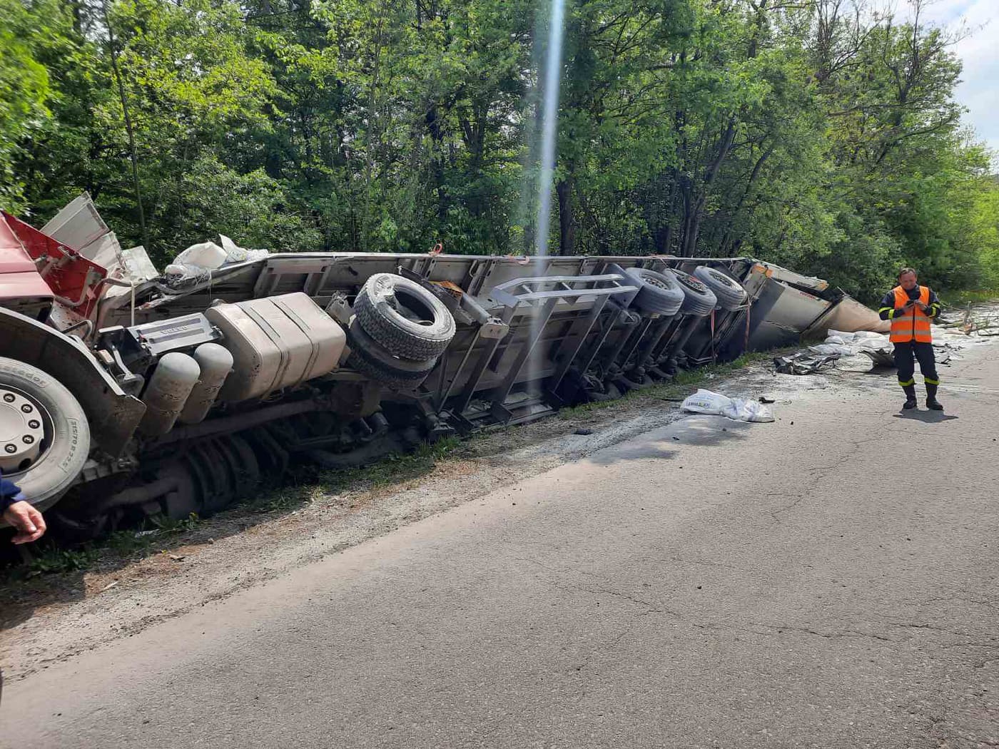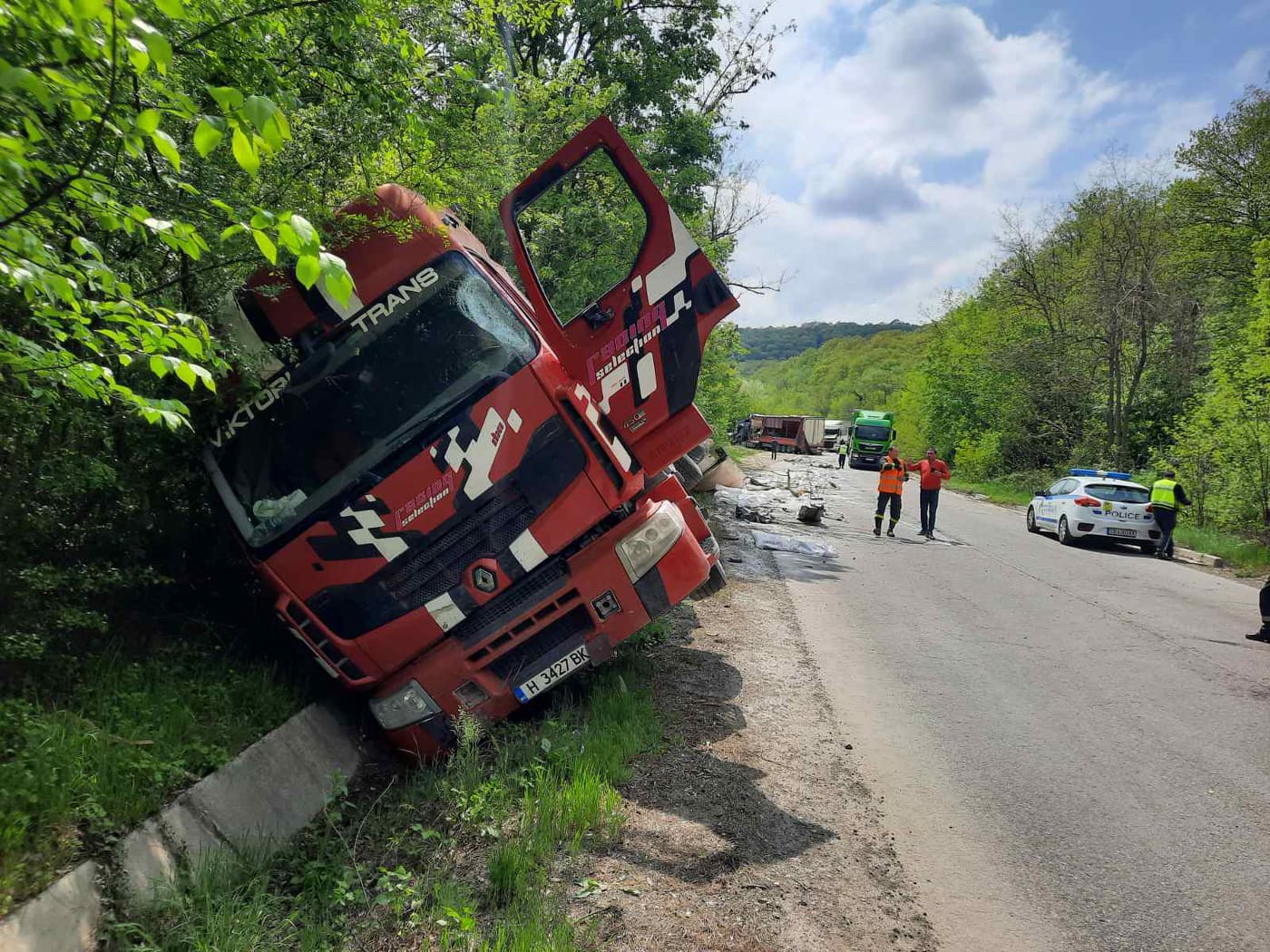Катастрофа е станала до контролен горски пункт Цонкова барака край Смядово. Това съобщиха от полицията. По първоначални данни водач на тежкотоварен автомобил е навлязъл в лентата за насрещно движение, срещу него е идвал друг тежкотоварен автомобил. Мъжът зад волана направил опит да избегне удара. Двата автомобила са се ударили, а след това последвал лек удар от идващи други два автомобила. Един от водачите е откаран за преглед в шуменската болница.
