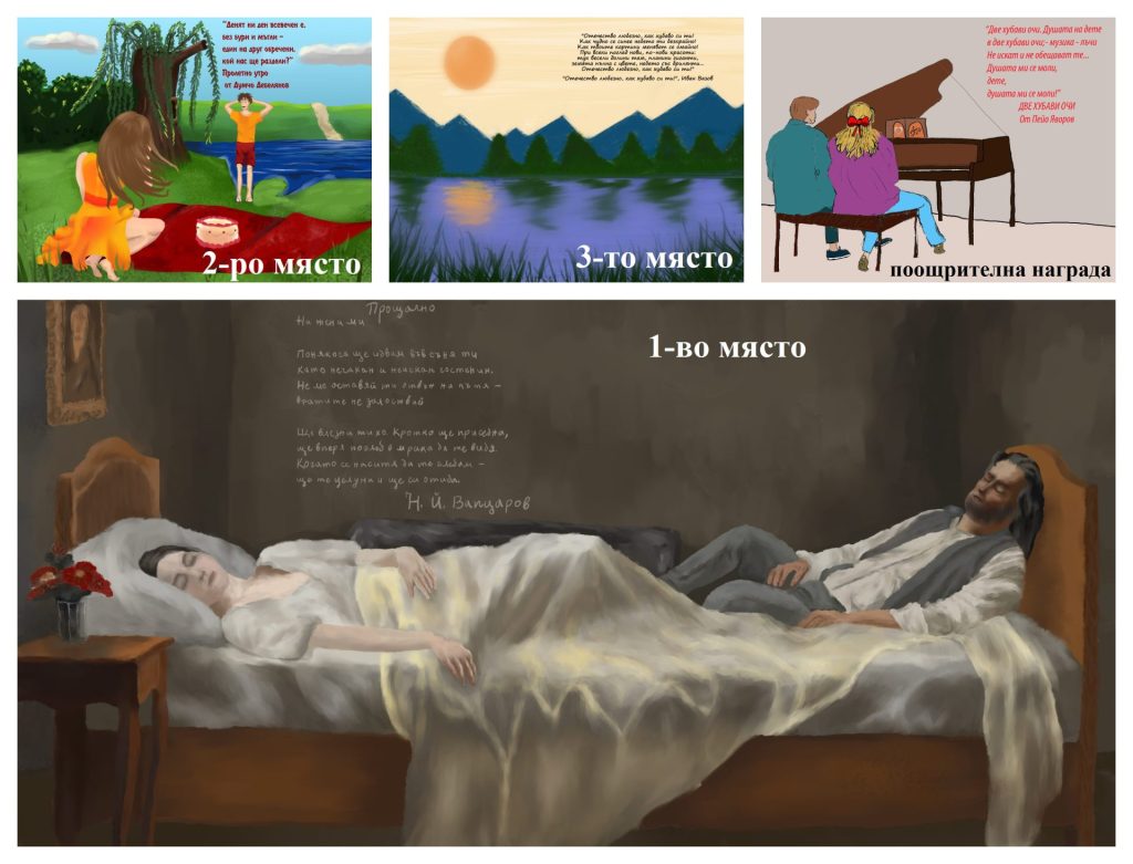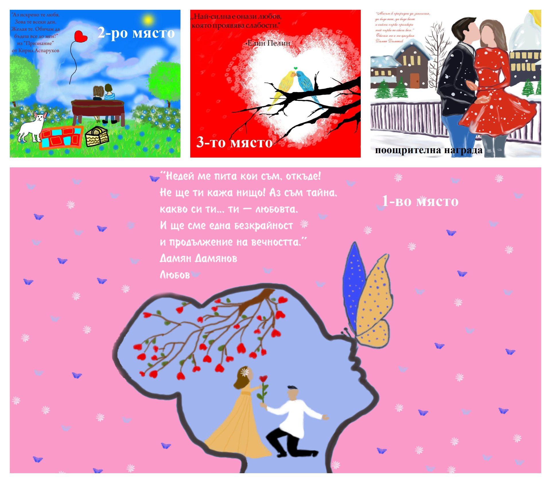 Организаторите предизвикаха участниците, ученици от V до XII клас, чрез картина и стих/цитат на стихотворение от български поет и с помощта на техниките на дигиталното изкуство, да изразят чувства на обич, любов, привързаност, нежност.